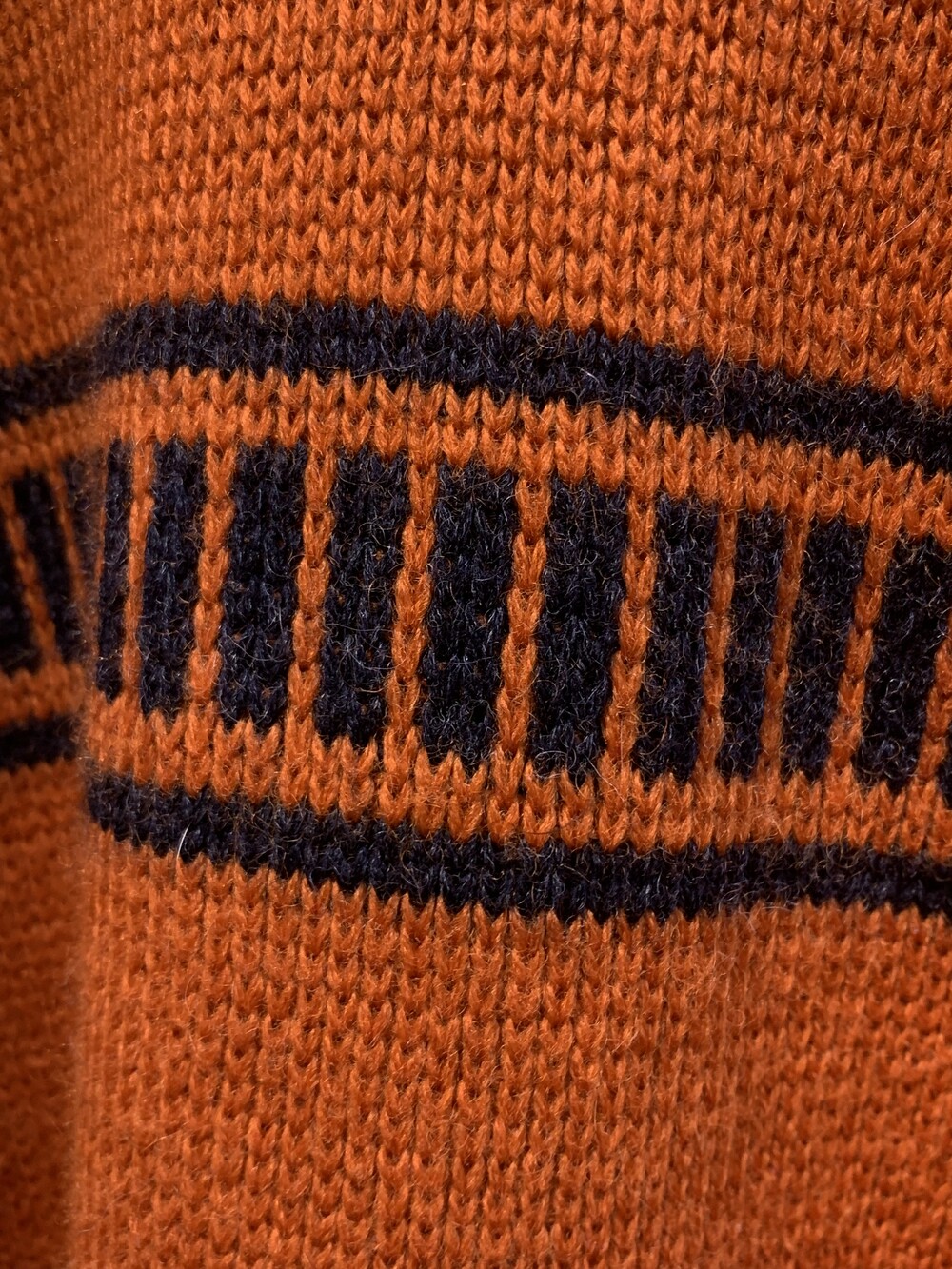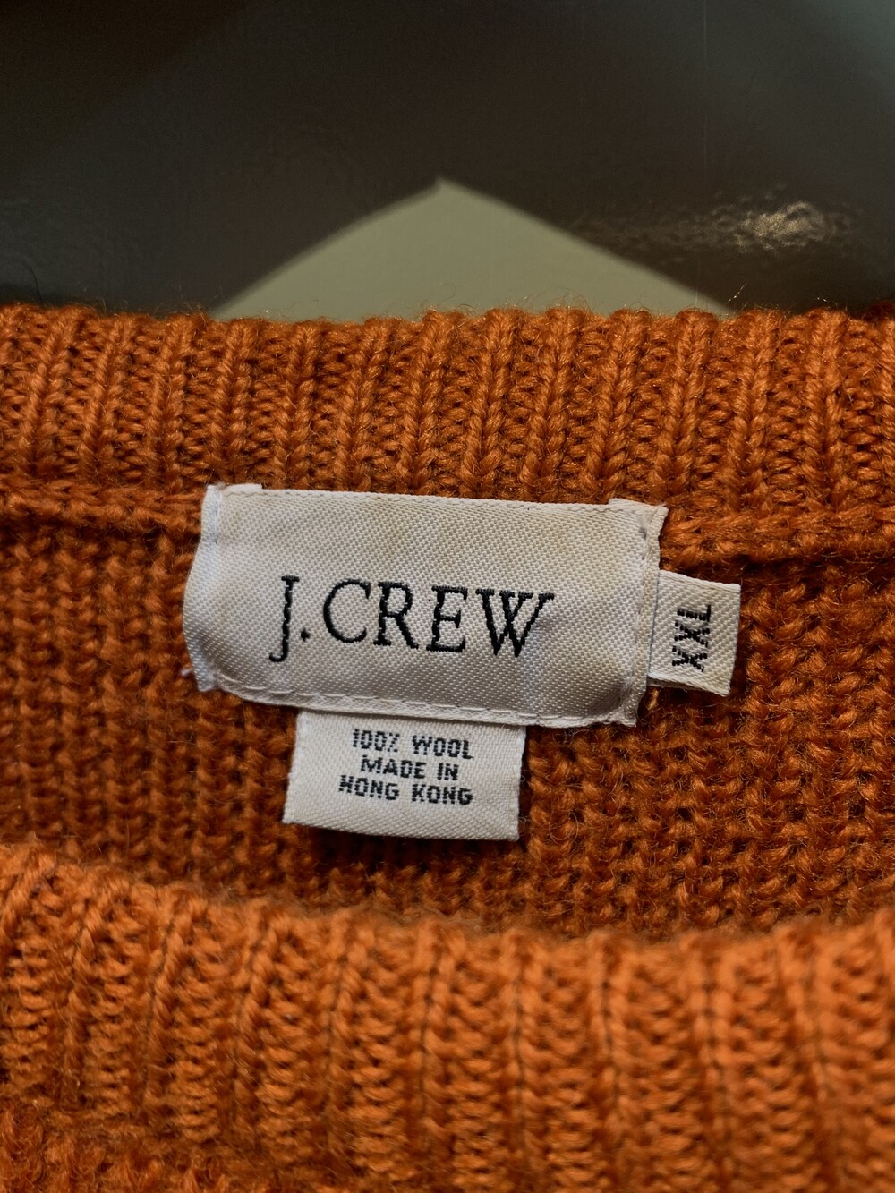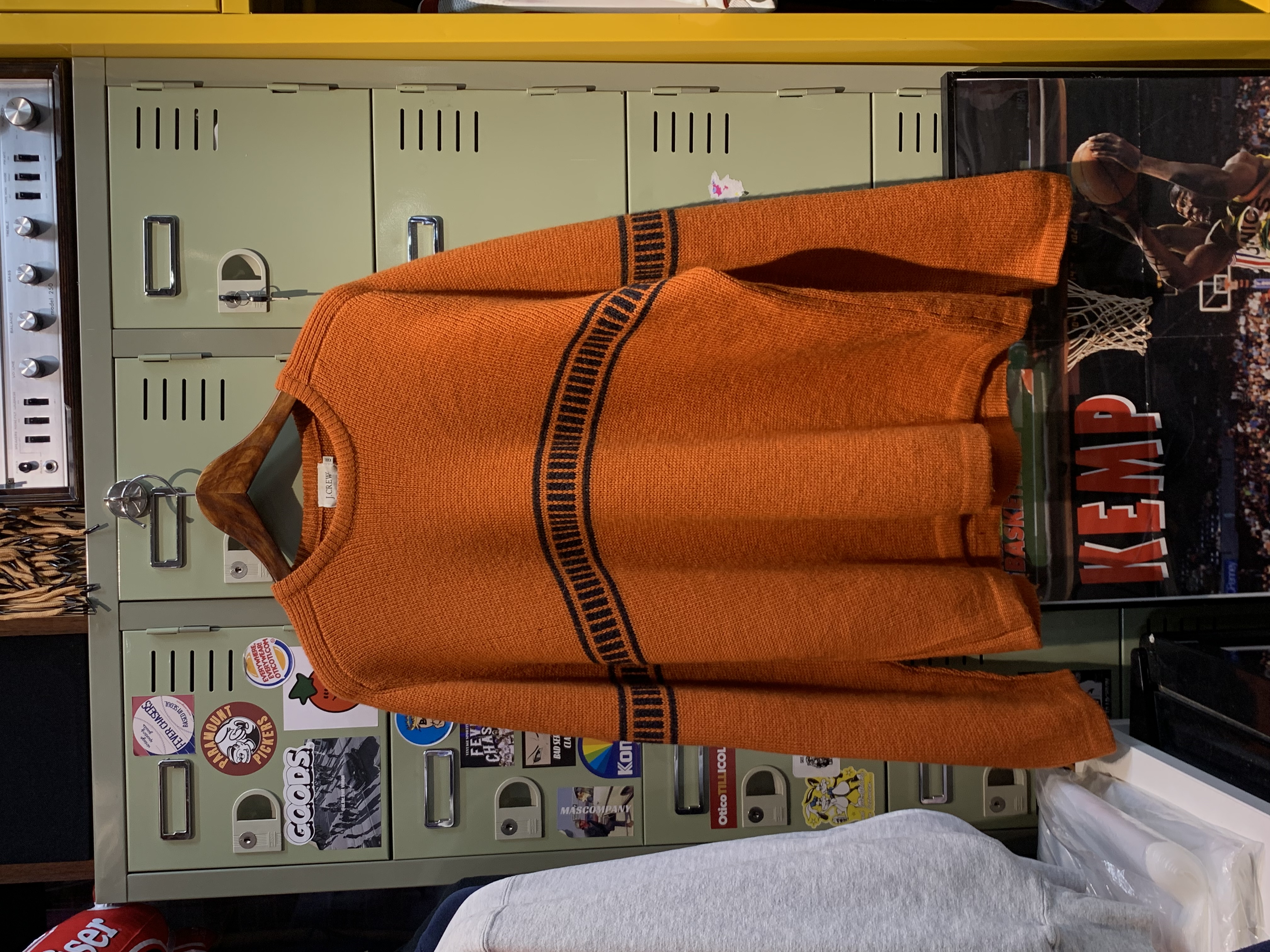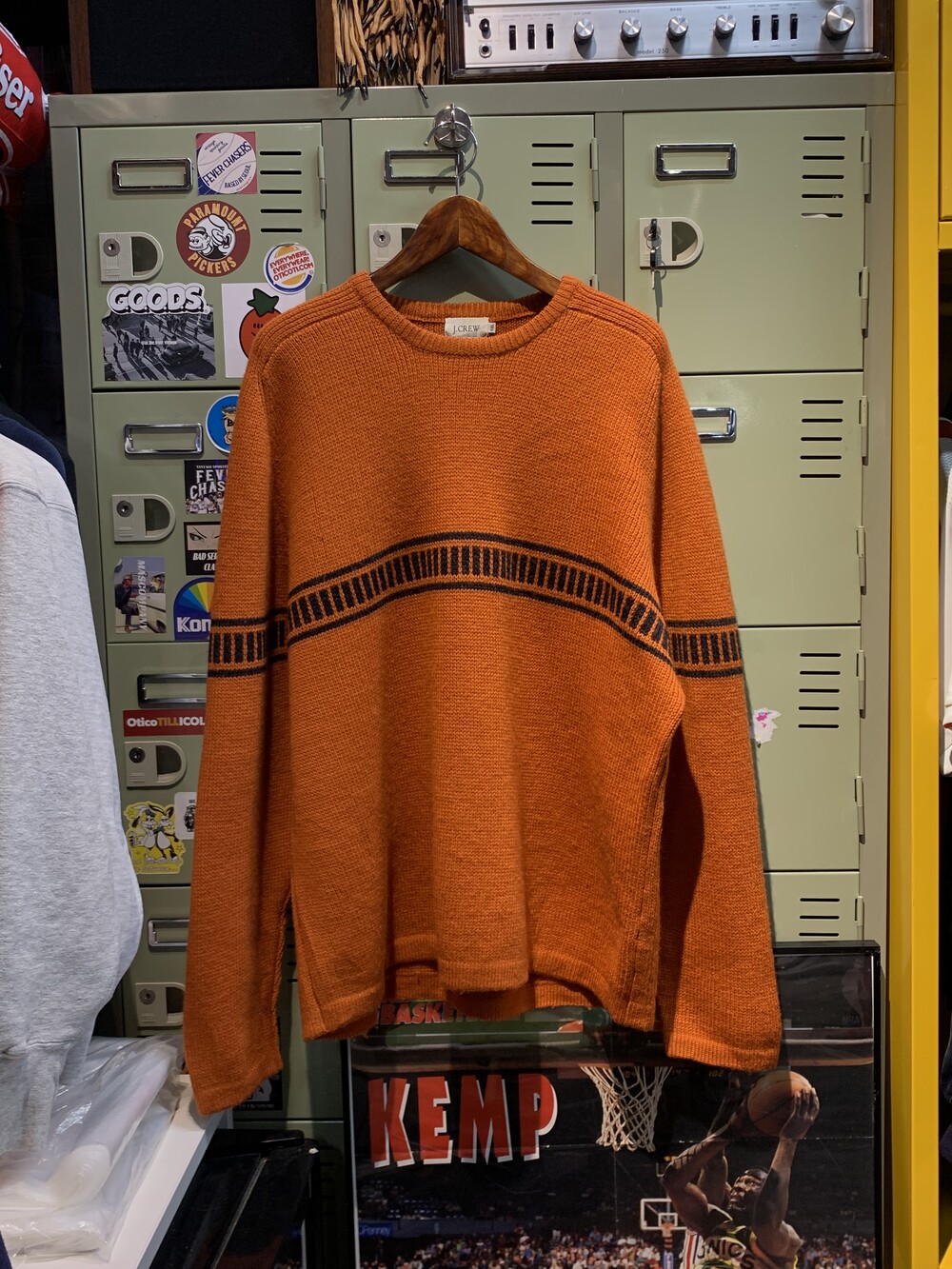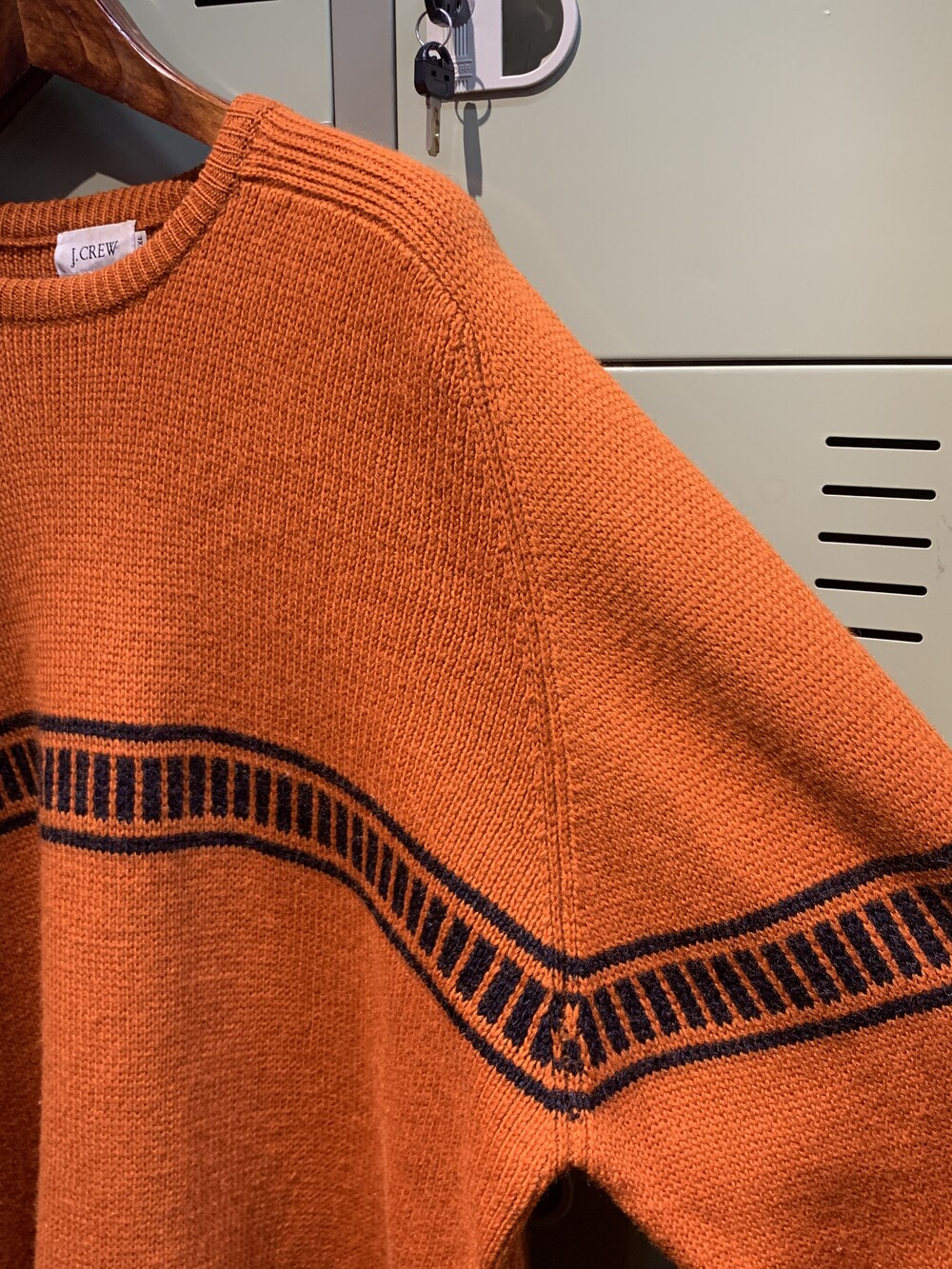 청키한 두께감과 가로 방향으로 가로지르는 스트라이프 패턴이 돋보이는 올드 제이크루 울 스웨터. 여유로운 사이즈로 캐주얼하게 활용하기 좋을만한 제품입니다