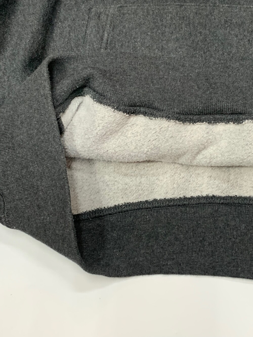 몸판 원단의 결이 가로방향을 향하도록 원단을 90도 돌려 재단하고, 몸판 측면에는 사이드 패널이 붙는 호리즌탈 위브(Horizontal) 타입의 올드 갭 스웻 후디. 코튼 함량이 높으나 중량감이 높지 않아 혼용률에 비해 비교적 유연한 원단감을 자랑하며, 전면 스펠아웃 로고 패치, 사이드패널 탭이 붙는 심플한 구성의 제품입니다. 표기 대비 여유로운 사이즈로 소매나 밑단 립이 타이트하지 않아 오버사이징 하기에도 좋을만한 제품입니다.