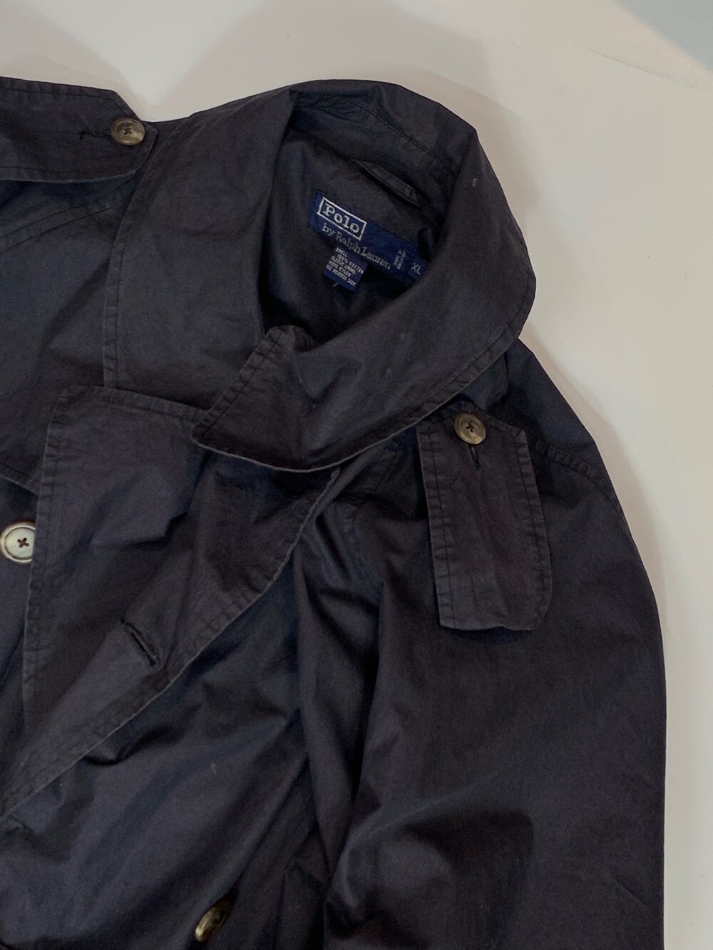 🚩Detail 얇으면서도 밀도가 높은 코튼 포플린 원단과 소매가 한 장의 패널로 구성된 래글런 슬리브 형태가 더해져, 트렌치코트 특유의 우아한 실루엣을 비교적 캐주얼하게 즐길 수 있을만한 폴로 랄프로렌의 싱글 래글런 트렌치코트. 올드 버버리 트렌치코트 중에서도 대표적인 모델 트렌치21을 베이스로 웨어러블하게 변경한듯한 제품입니다.