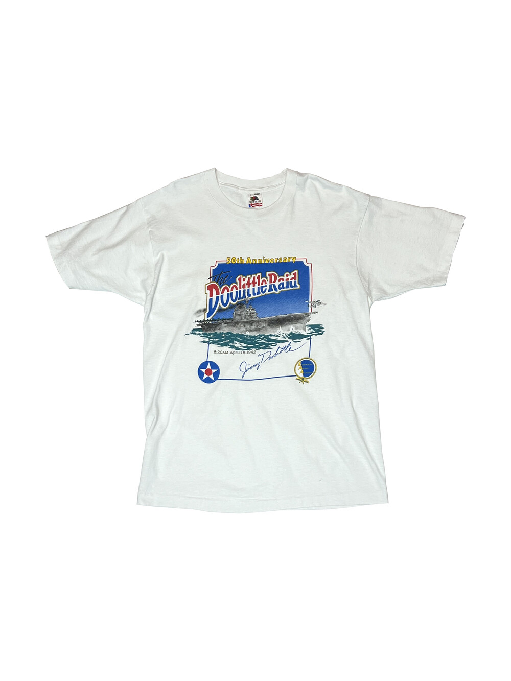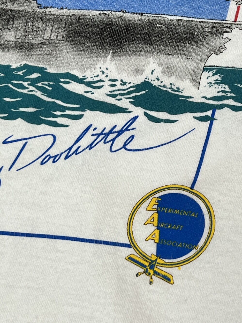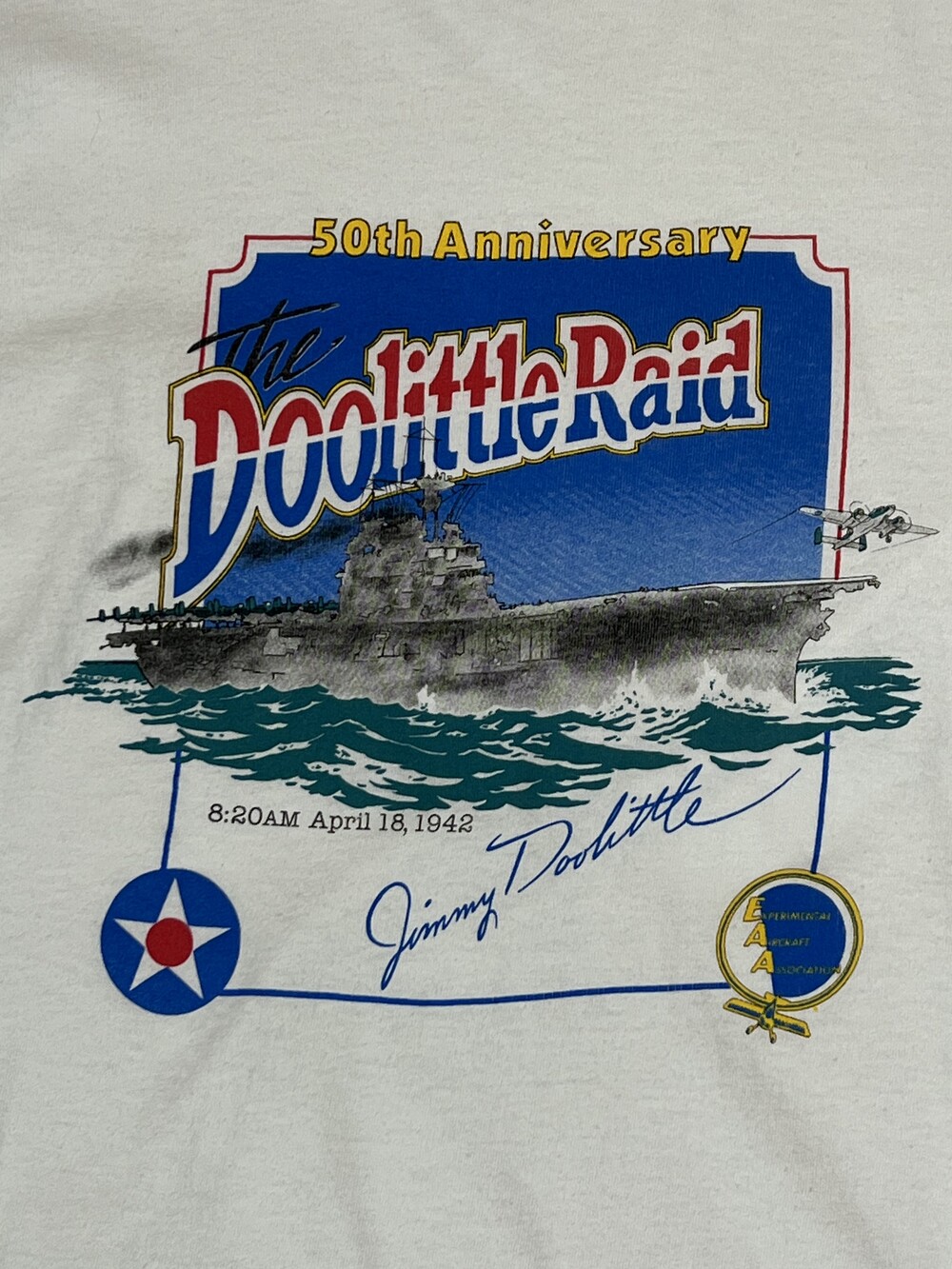 1942년 4월 18일 제 2차 세계 대전 기간에 실시된 미국의 작전 THE DOOLITTLERAID 작전을 기념하기 위한 프린팅이 올려진 티셔츠.