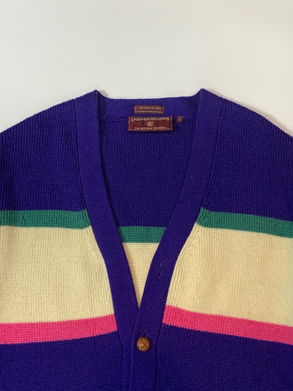 1990s CHAPS RALPH LAUREN Striped Wool Cardigan