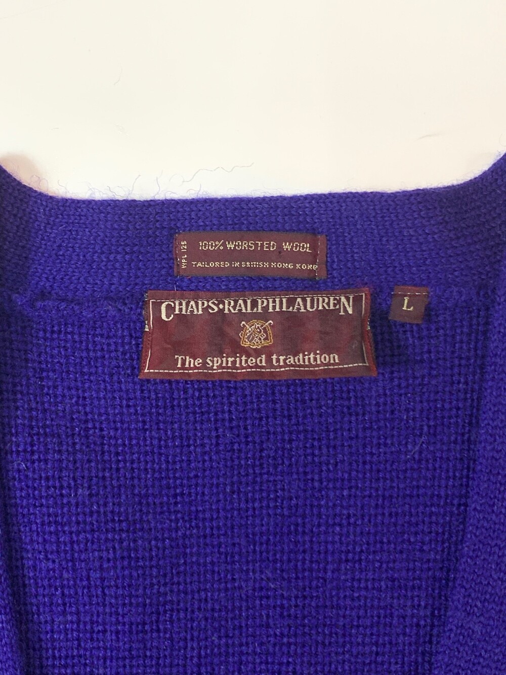 두께감있는 소재와 어울릴만한 컬러블록이 돋보이는 챕스랄프로렌의 울 카디건입니다. 포켓부분 니팅과 월넛 컬러 버튼 등 올드 카디건에서 볼 법한 디테일이 매력적인 제품입니다.