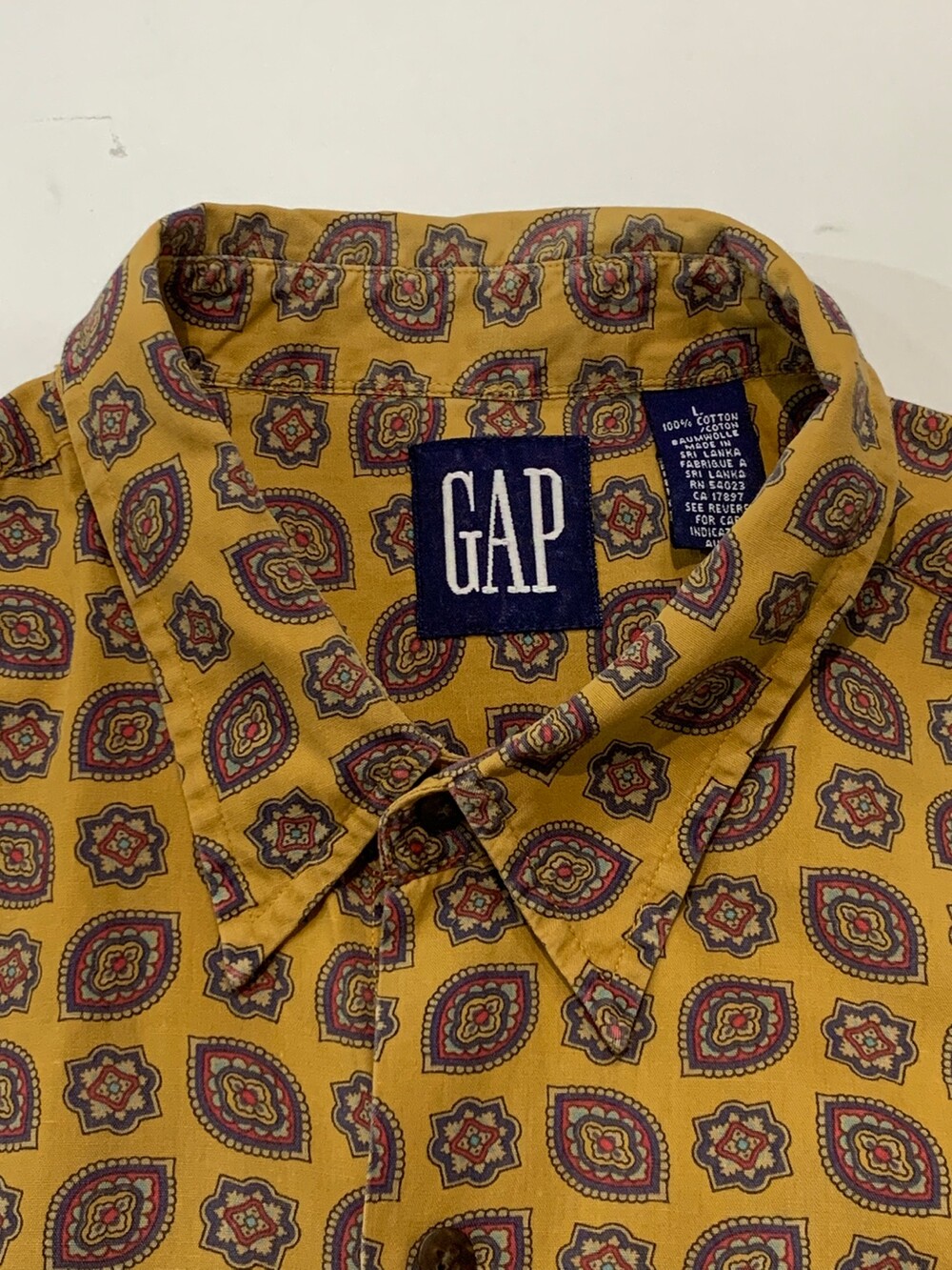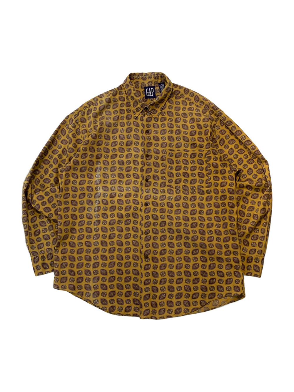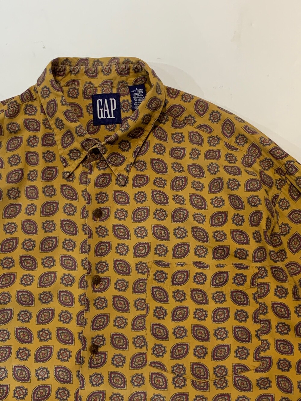 🚩Detail 1990년대에서 2000년대 사이에 생산된, 올드 갭의 셔츠입니다. 요철감이 잘 느껴지지 않는 코튼 포플린 원단에 페이즐리 패턴이 규칙적으로 반복되는 패턴으로, 덥고 습해 스타일링이 비교적 단조롭기 쉬운 여름철에 셔츠 단품이나 얇은 아우터로 활용하기 좋을만한 제품입니다. 코튼 소재 팬츠에 턱인해서 자켓과 스타일링할 때에도 특유의 페이즐리 패턴이 돋보일만한 제품입니다.