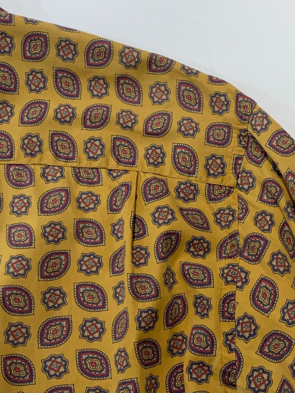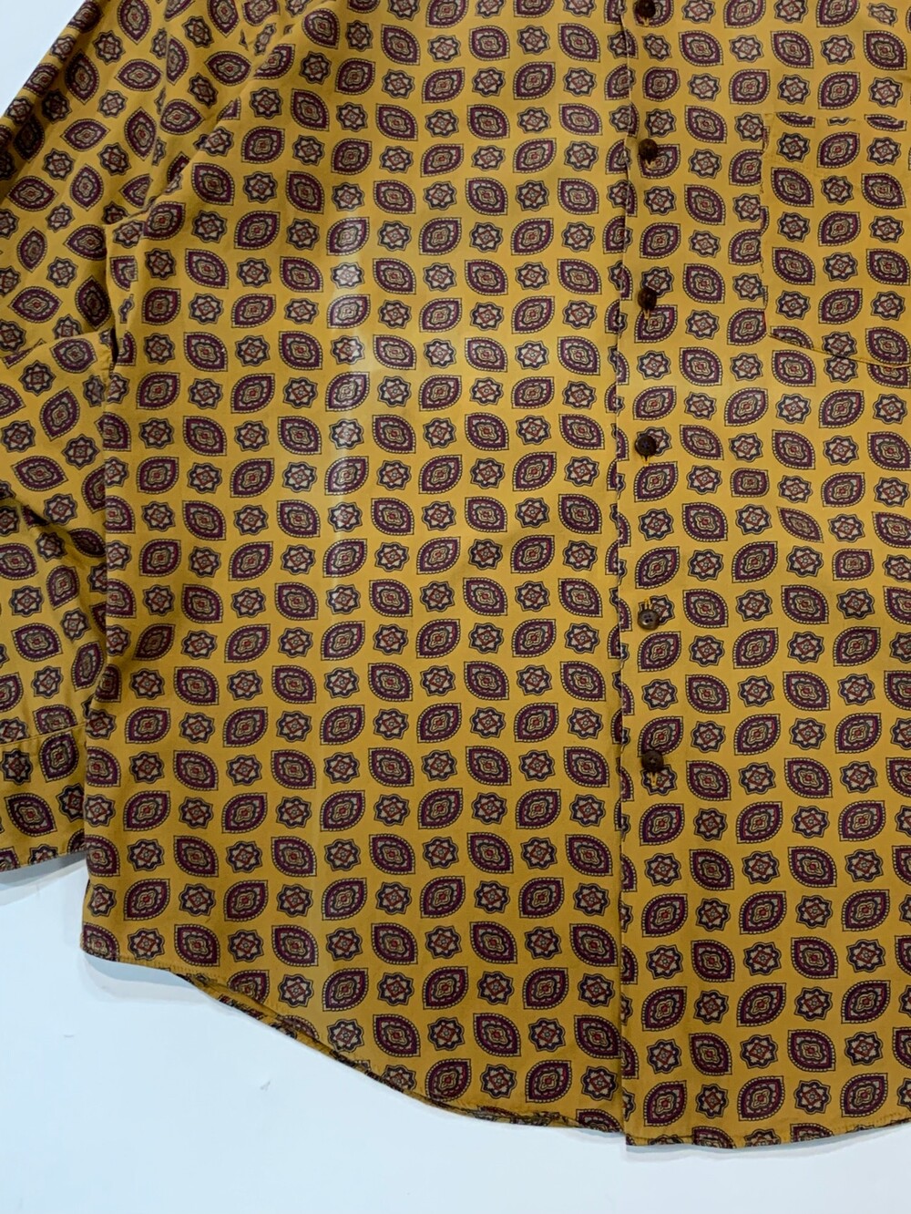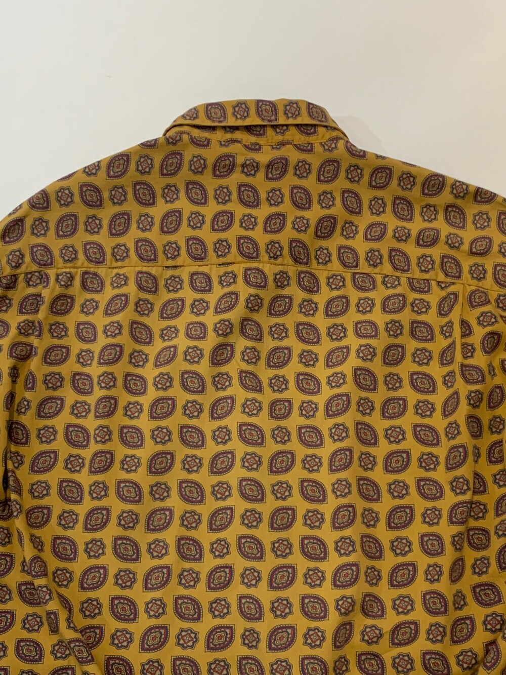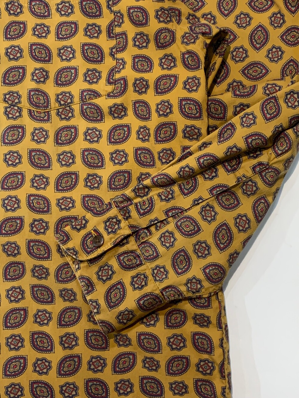 🚩Detail 1990년대에서 2000년대 사이에 생산된, 올드 갭의 셔츠입니다. 요철감이 잘 느껴지지 않는 코튼 포플린 원단에 페이즐리 패턴이 규칙적으로 반복되는 패턴으로, 덥고 습해 스타일링이 비교적 단조롭기 쉬운 여름철에 셔츠 단품이나 얇은 아우터로 활용하기 좋을만한 제품입니다. 코튼 소재 팬츠에 턱인해서 자켓과 스타일링할 때에도 특유의 페이즐리 패턴이 돋보일만한 제품입니다.