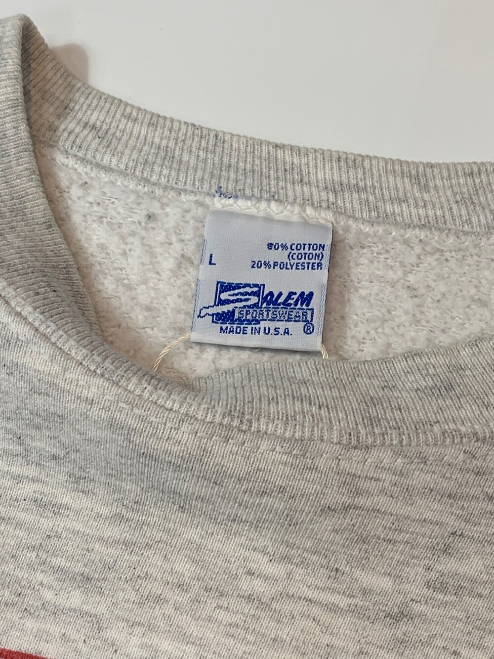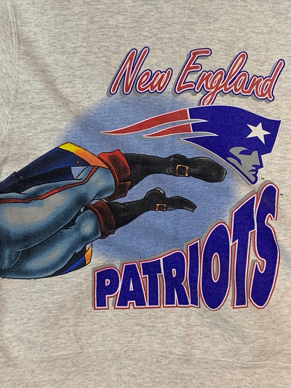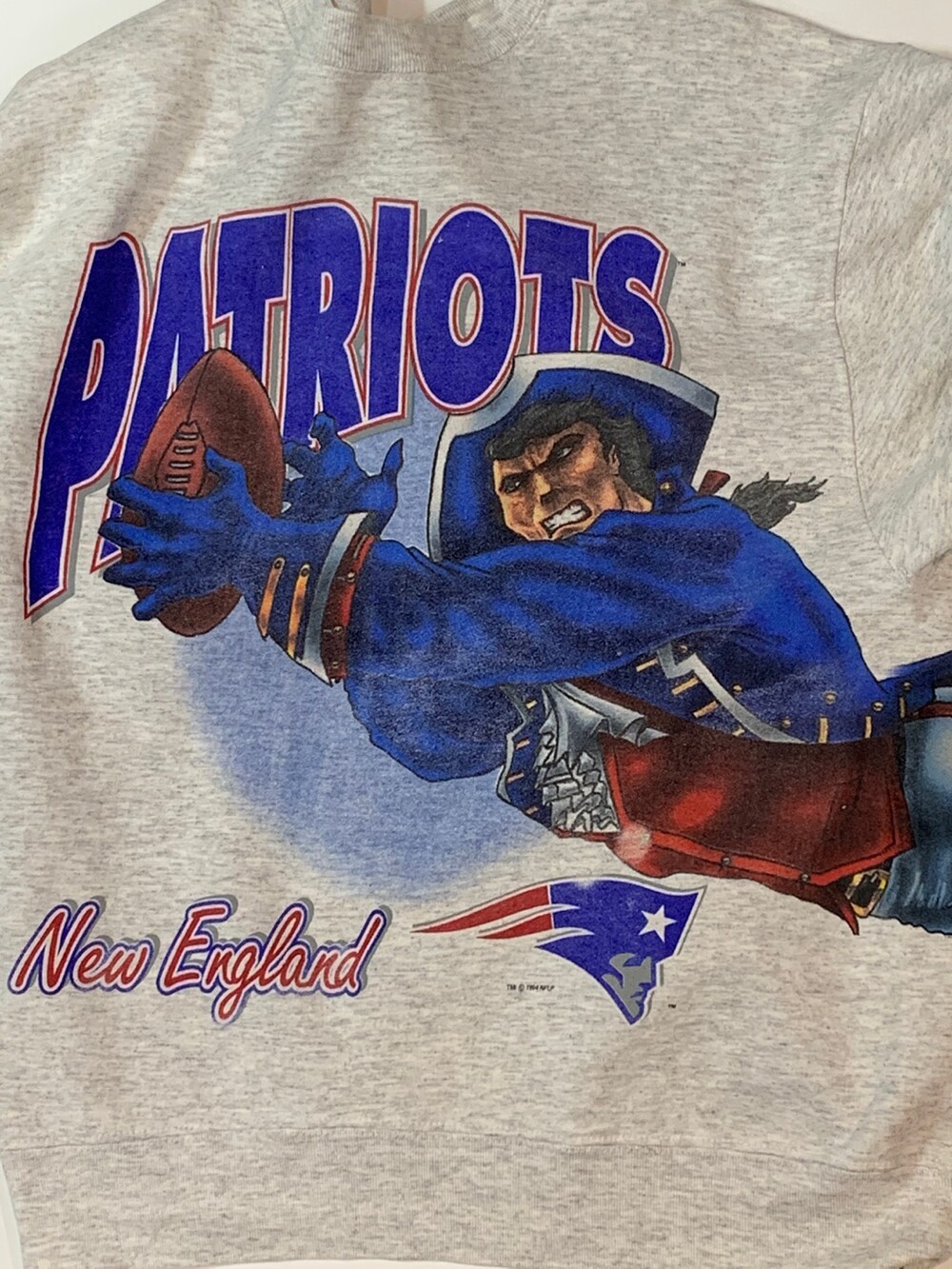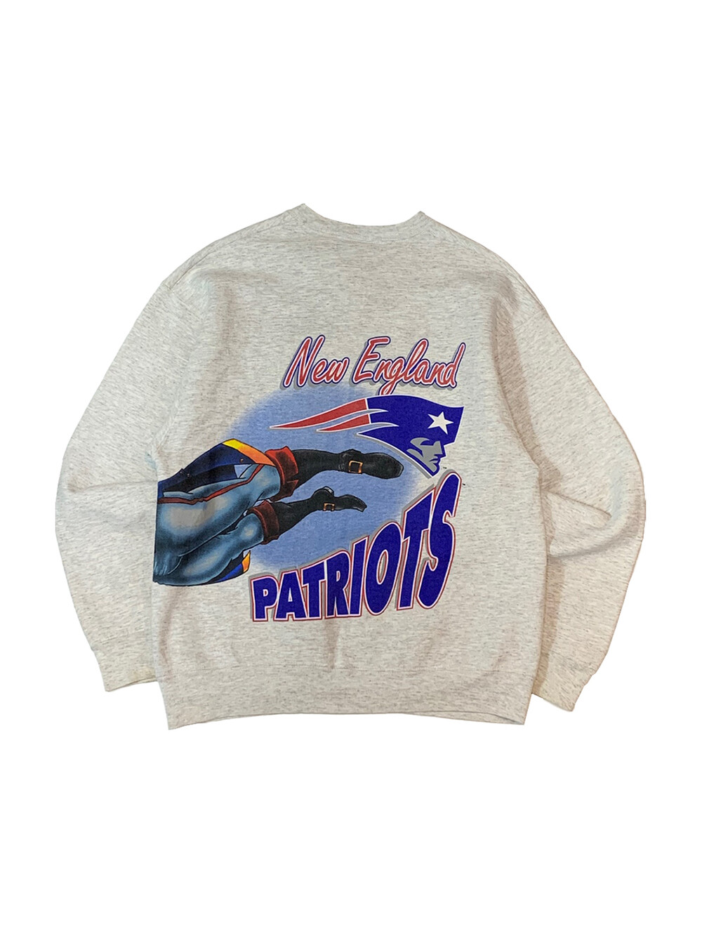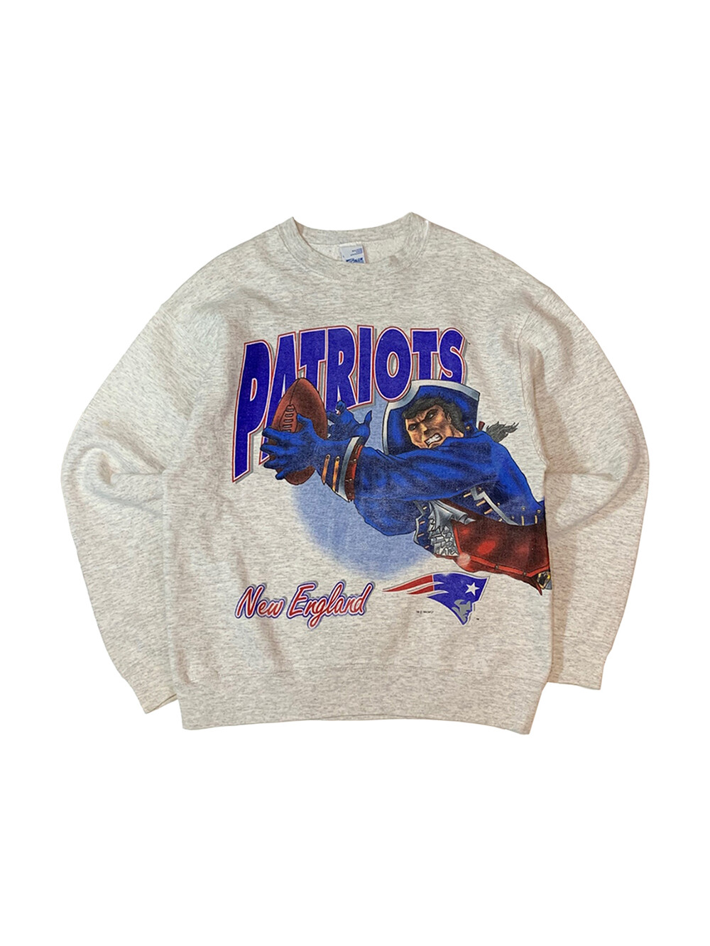 🚩Detail 스크린 프린팅 업체로 시작하여, 1990년대 들어 스포츠 관련 프린팅을 주력으로 선보이며 명성을 얻고 직접 제작한 티셔츠, 스웻셔츠등의 스포츠웨어 바디에 스포티한 감성의 프린팅을 올려 판매했던 세일럼 스포츠웨어(SALEM SPORTSWEAR)의 스웻셔츠. 미국 프로 미식축구 NFL 아메리칸 컨퍼런스 동부지구 소속 뉴잉글랜드 패트리어츠 마스코트가 몸판을 둘러 큼지막하게 올려진 프린팅이 돋보이는 제품.