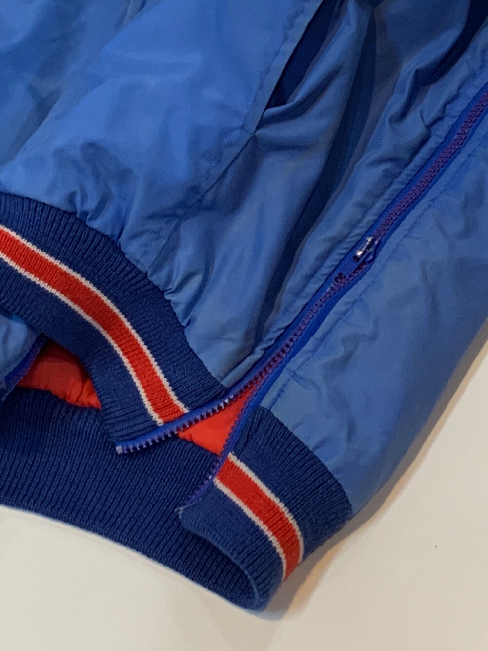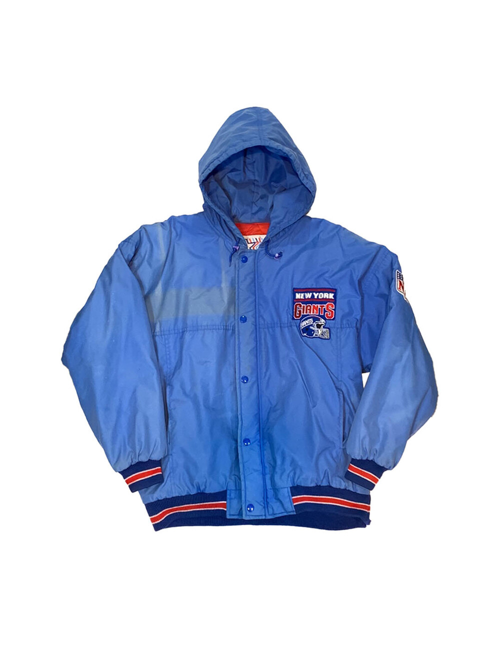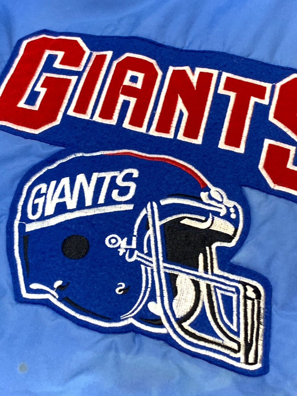 🚩Detail 1980년대부터 1990년대까지 스타터의 브랜드파워가 대단했다고는 하지만 그 인기에 비하면 동시대에 카피 혹은 부틀렉 제품의 존재를 찾을 수가 없었습니다. 당시 생산 단가에 비해 리테일 가격이 높은 옷이 아니라서 굳이 애써서 가품을 생산할 필요가 없었을 터인데, 그런 의미에서 상당히 보기 드문 스타터의 부틀넥(Bootleg) 나일론 자켓입니다. 뉴욕 자이언츠를 대표하는 레드 &블루 배색이 들어간 제품으로, 라이센스드 프로덕트와는 달리 전후면 워드마크 디자인을 그대로 사용하지 않고 변형한 것으로 보입니다.