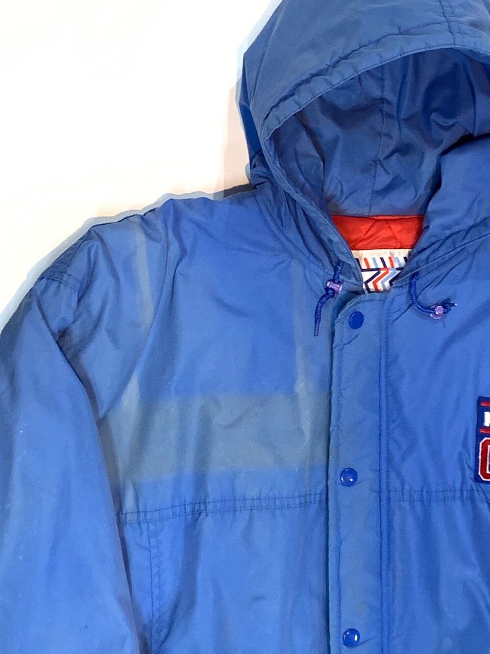 🚩Condition 전후면 얼룩과 페이딩, 그리고 전면 후드 스트링 어드저스터가 파손되어 전반적으로 사용감이 있는 제품.