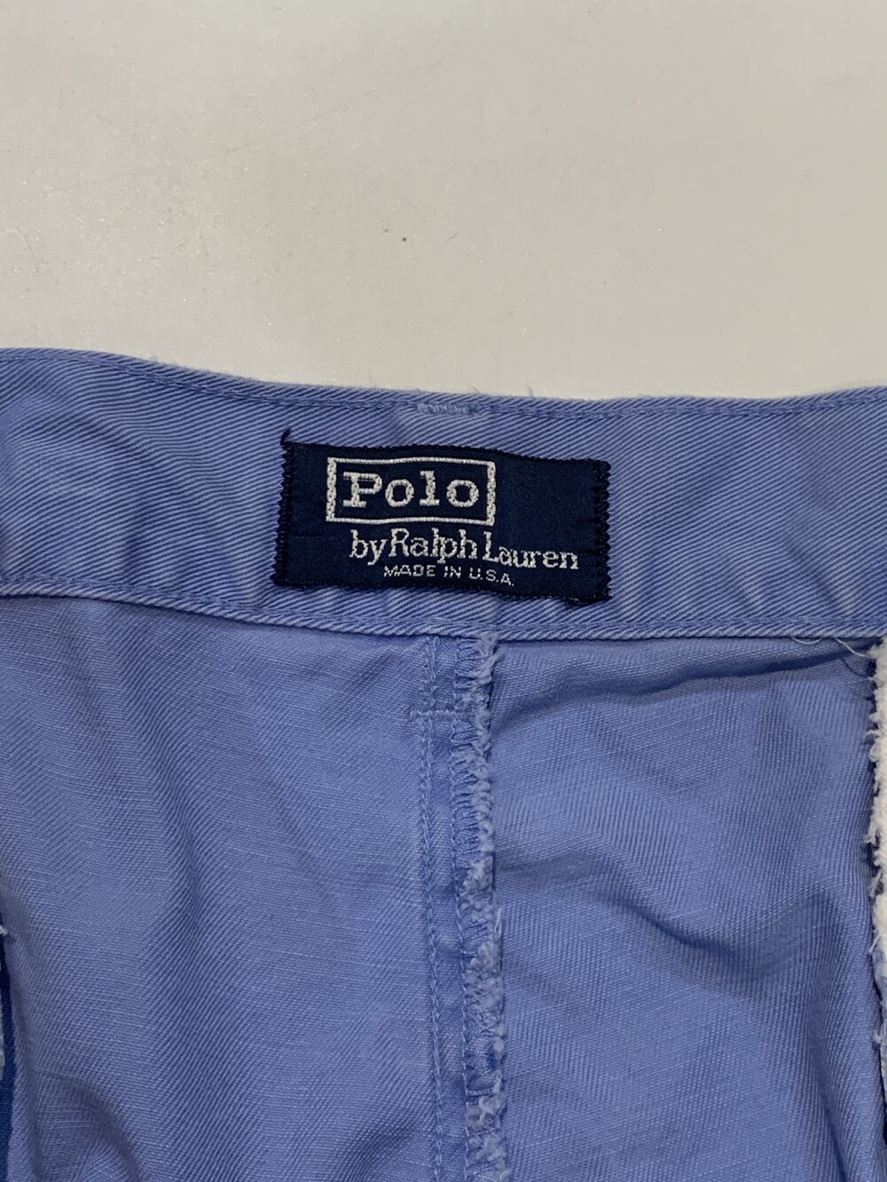 🚩Detail 전면 두 개의 포워드 플리츠가 적용된 폴로 랄프로렌의 코튼 치노팬츠입니다. 어센틱 드라이 굿즈(Authentic Dry Goods) 라고 기재된 정사각형 올드 라벨이 붙는 미국제 제품으로, 적당한 두께의 코튼 트윌 원단과 플리츠 덕분에 여유로운 실루엣을 연출하기 좋을만한 제품입니다. 보기 드문 색감의 제품으로, 프린팅 티셔츠나 볼캡과 함께 매치하여 캐주얼하게 연출하기를 권장드립니다.