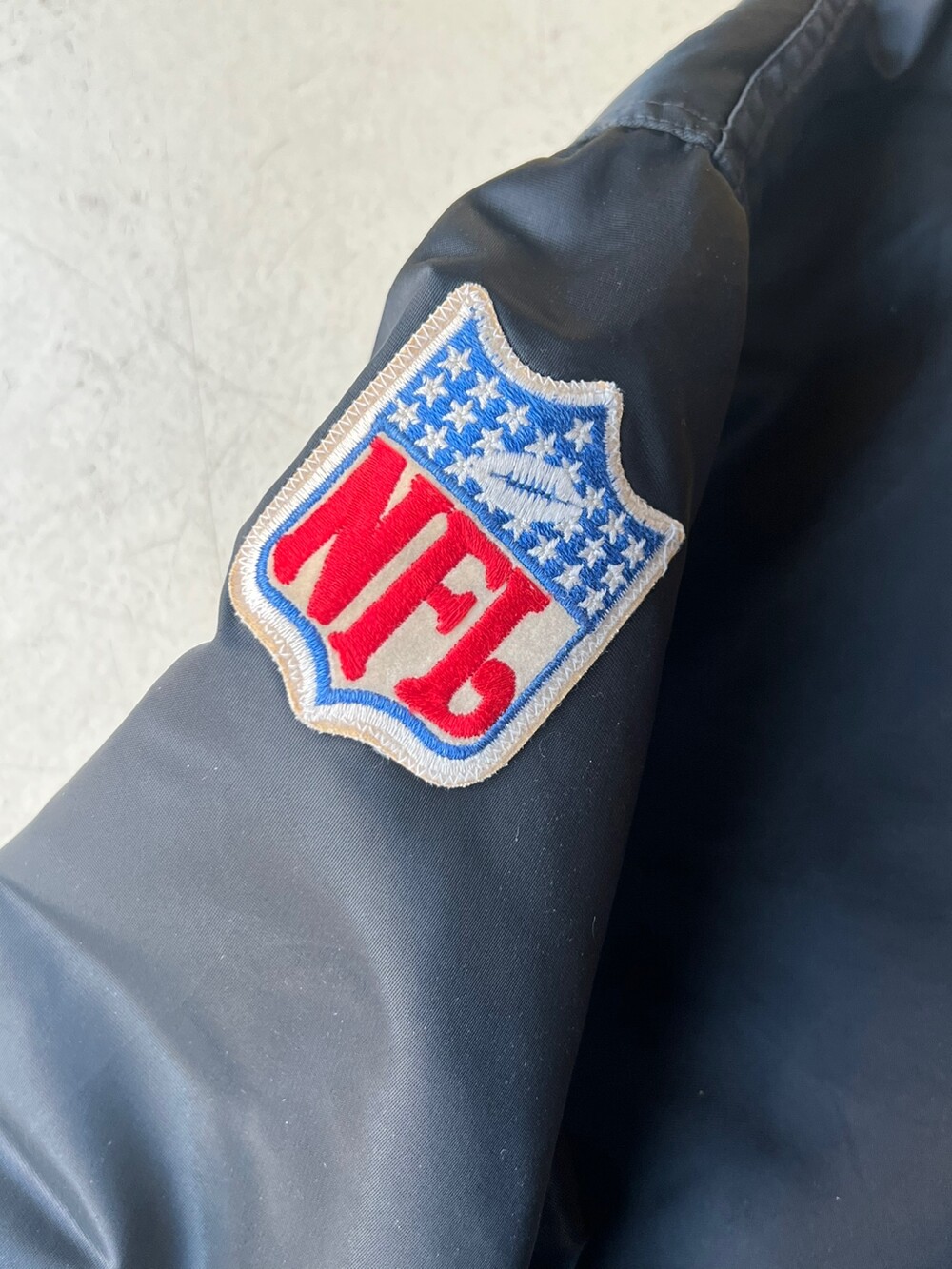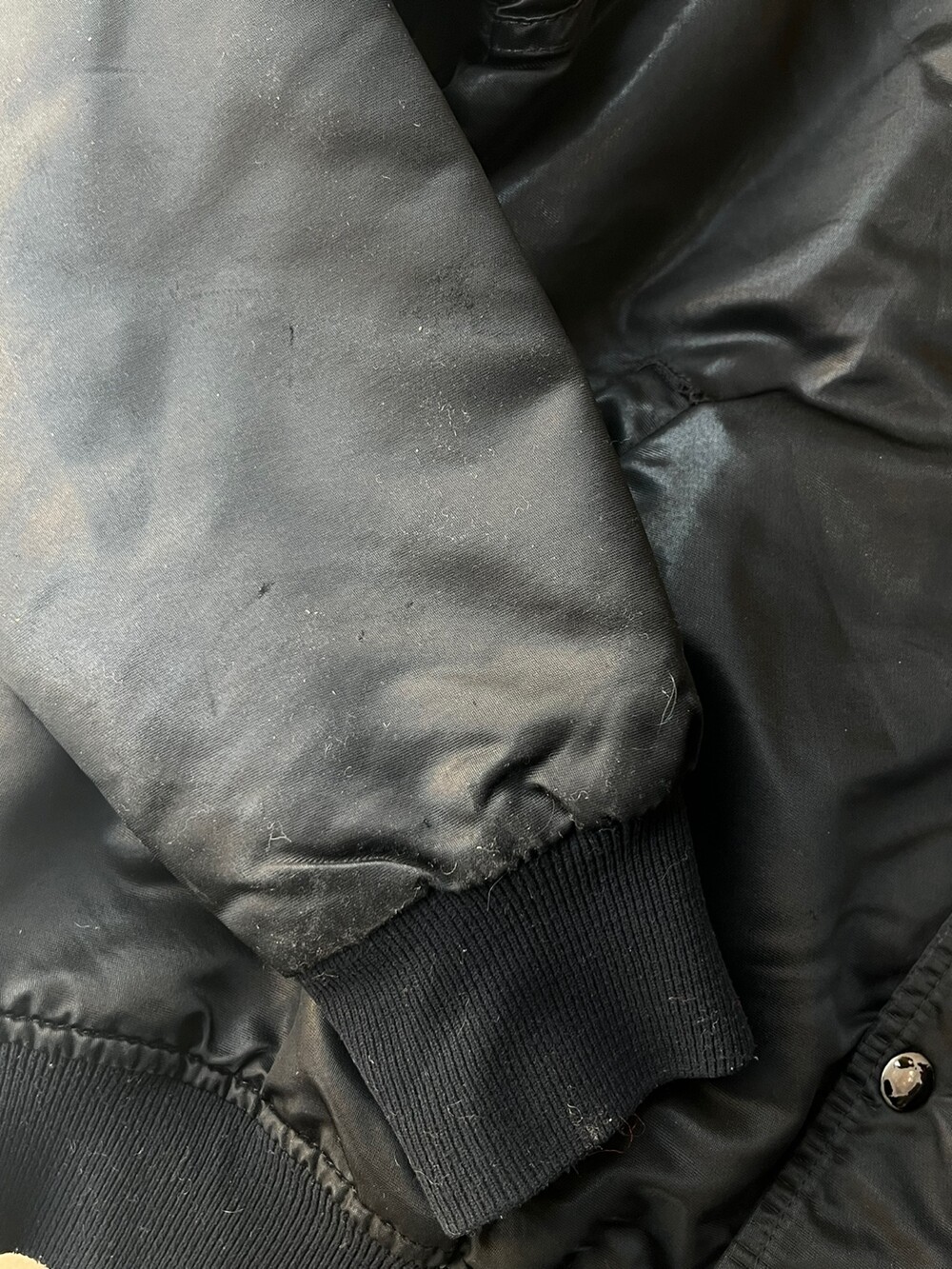 연고지를 로스엔젤레스로 옮기기 이전 오클랜드에 연고지를 두었던 NFL 소속의 프로 풋볼팀 오클랜드 레이더스의 팀 자켓입니다. 연고지를 로스엔젤레스로 옮기고 나서 무시무시한 외관의(?) 팬덤을 얻은 덕분에 빈티지 시장에서도 레이더스와 관련된 것들은 제법 몸값이 높은 편입니다.