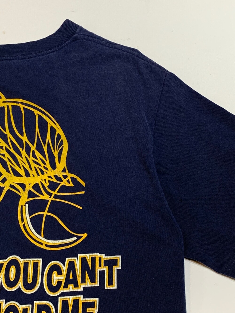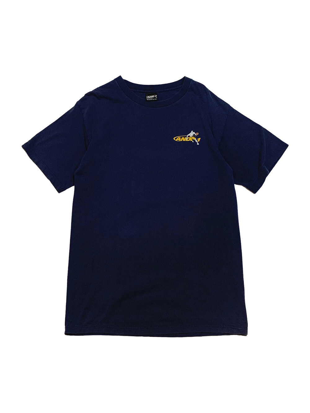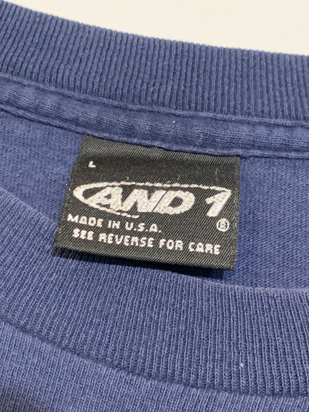 저화질 스트릿볼러 영상에 음악을 입힌 믹스테잎 발매를 기점으로, 바스켓 기어보다는 스트릿 바스켓볼 특유의 멋에 초점을 맞추어 브랜드를 전개했던 앤드원(AND1)의 반팔 티셔츠. 1990년대에서 2000년대 초반 사이에 생산된 제품으로, 전면에는 앤드원 로고, 후면에는 도발적인 내용의 문고와 역동적인 그림체의 덩크맨 프린팅이 올려져 있는 스포티한 분위기의 제품입니다.