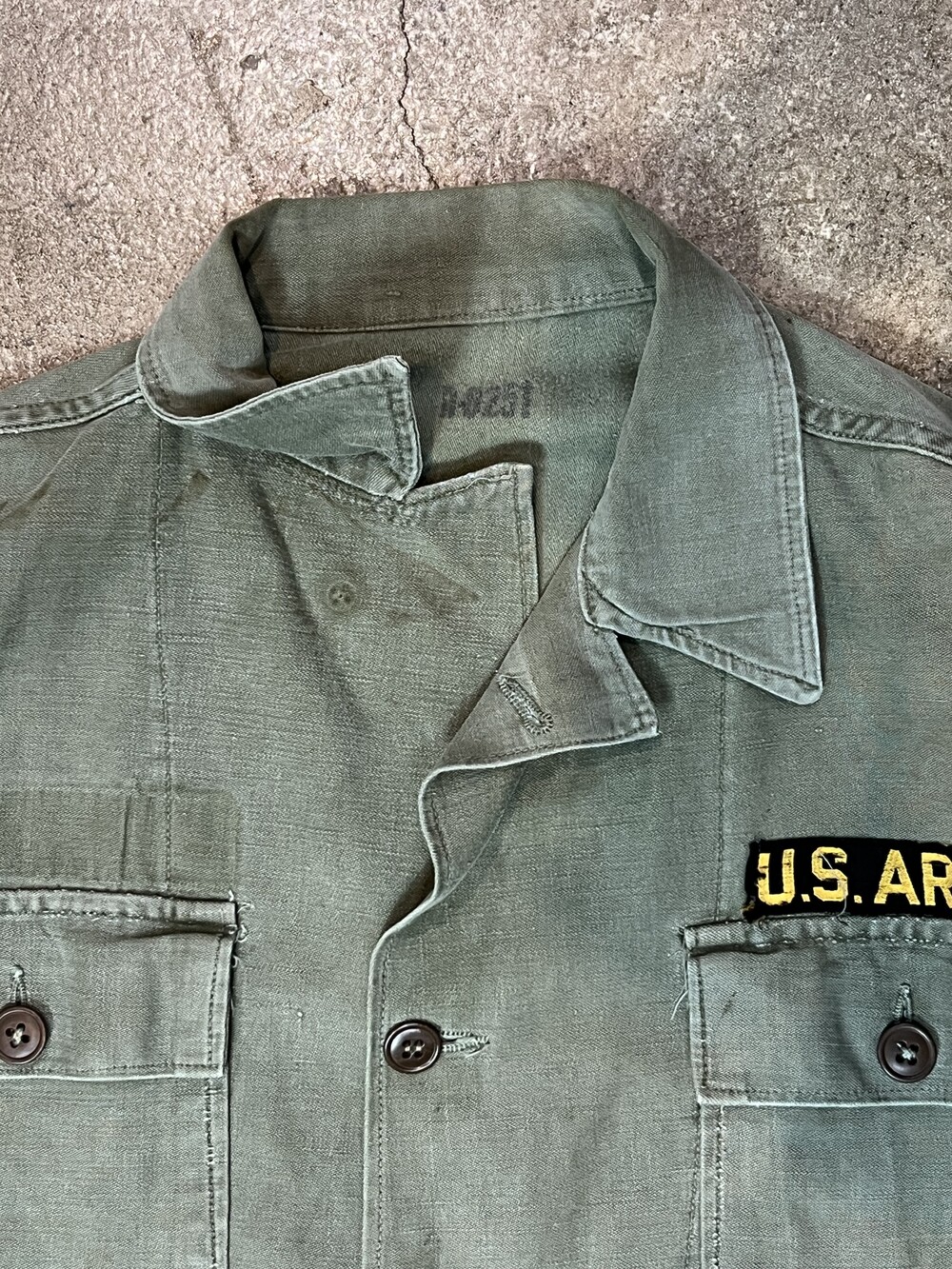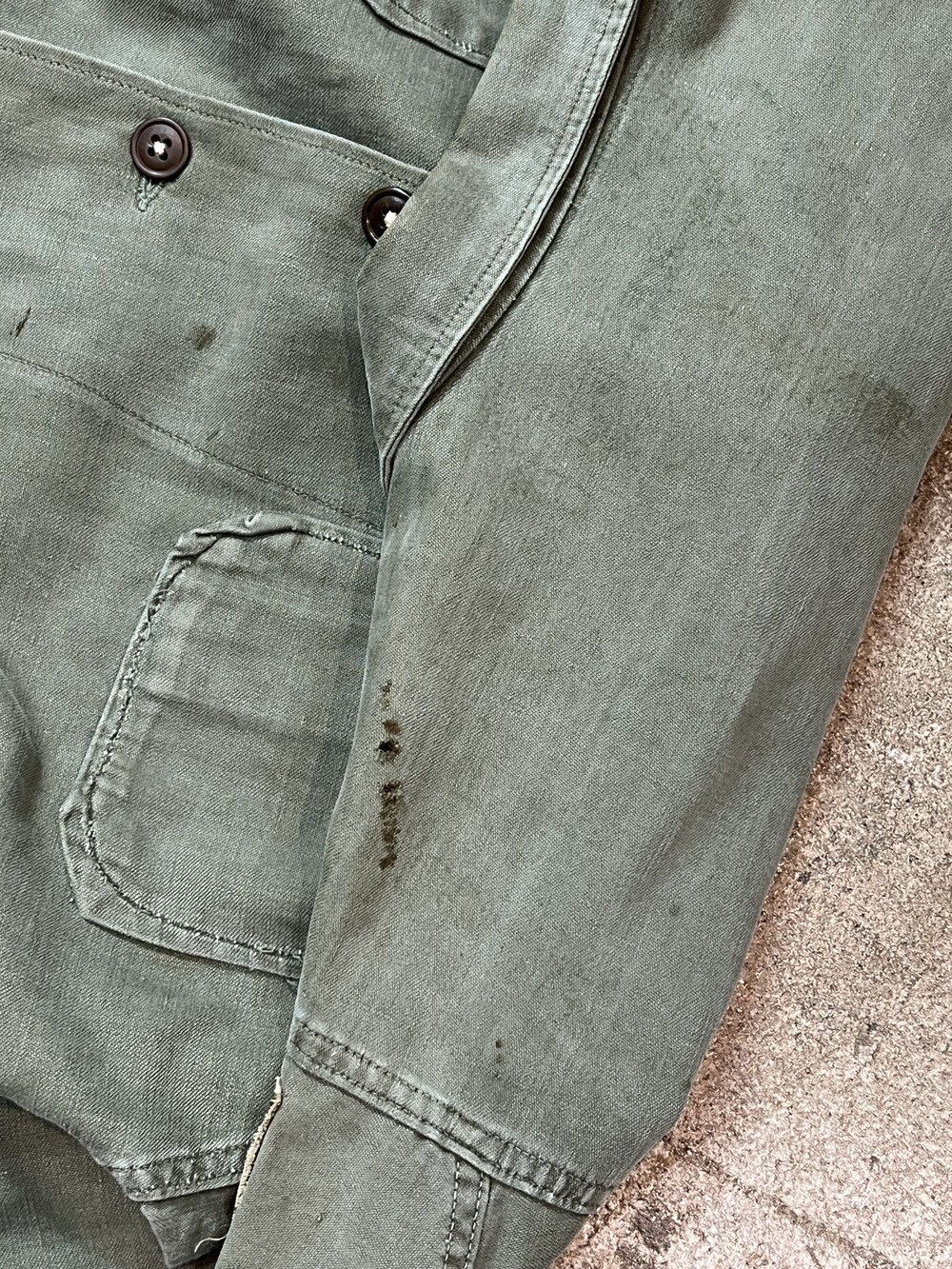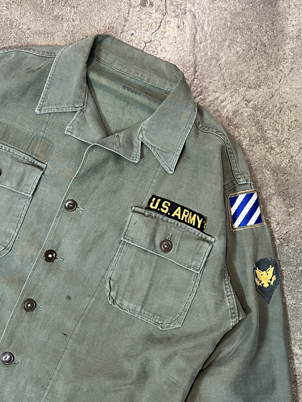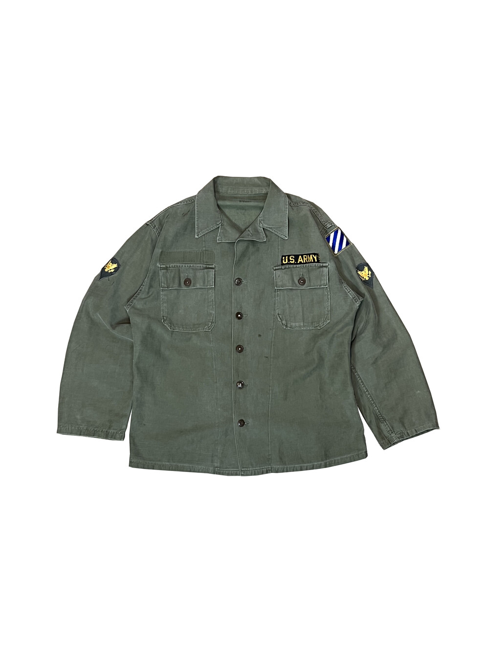 헤링본트윌 원단의 배틀드레스를 대신하여, 올리브그린 컬러의 8.5oz 의 코튼 사틴 원단을 사용한 새로운 유니폼은 1952년에 처음으로 공개됩니다. 1950년대부터 1960년대 초반 사이에 생산된 초기형 퍼티그 셔츠는 본래 넉넉하고 여유로운 피팅감으로 입게끔 고안된 제품이라고 합니다. 다소 직선적이고 투박한 실루엣의 옷인 만큼, 딱 맞게 입기보다는 여유로운 사이즈로 착용하기를 권장드립니다.