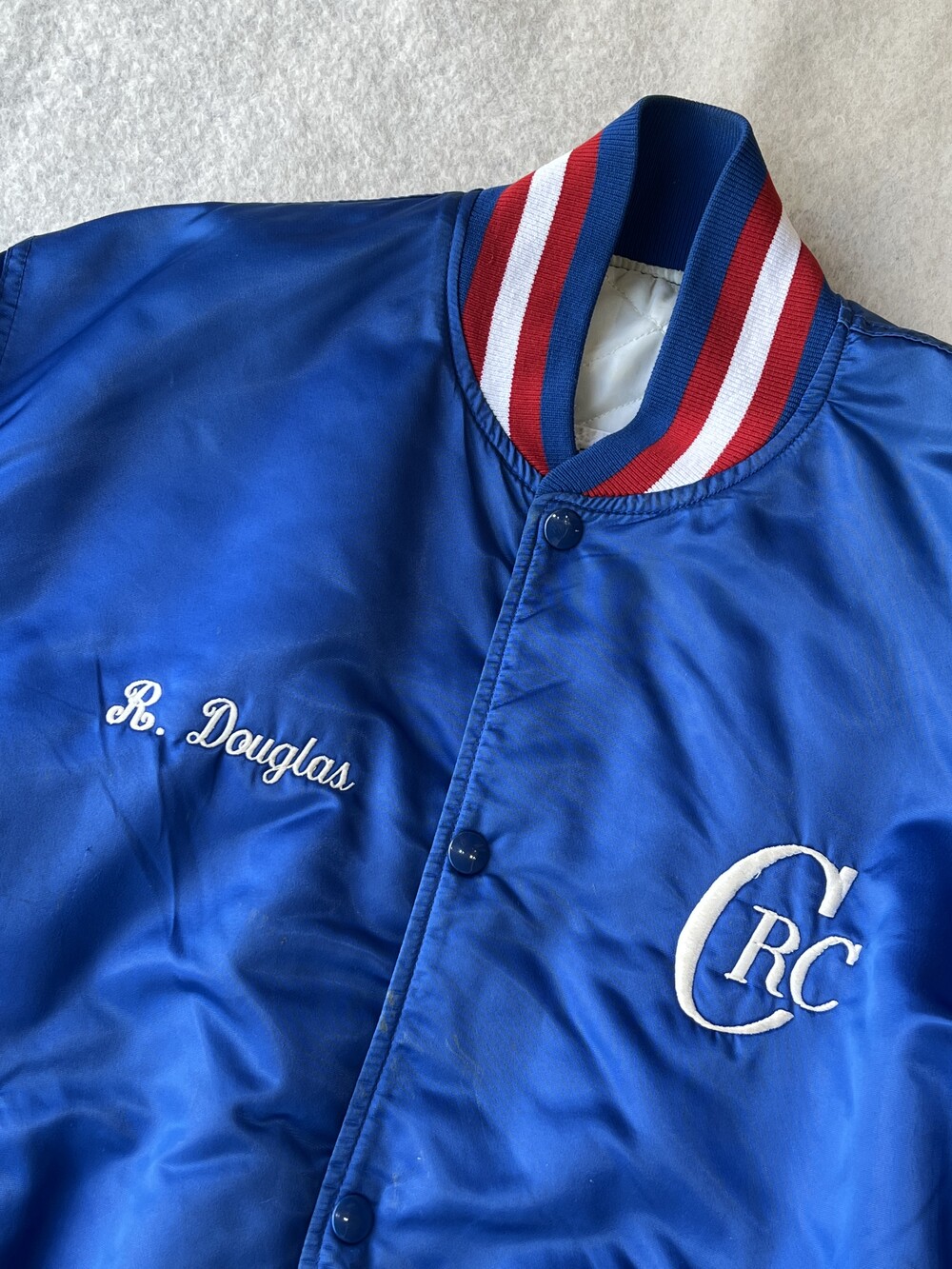 넓은 가슴단면과 크롭한 기장감으로 캐주얼하게 착용하기 좋은 제품으로, NCAA 참가팀이자Cosumnes River College의 바시티 팀 CRC HAWKS 의 스타디움 자켓으로 추정됩니다.