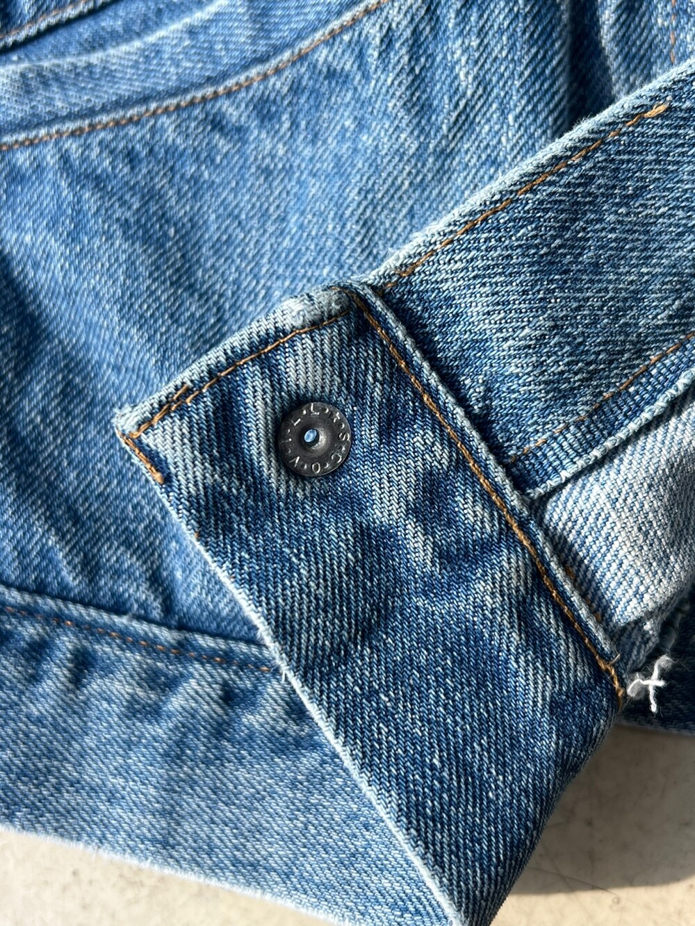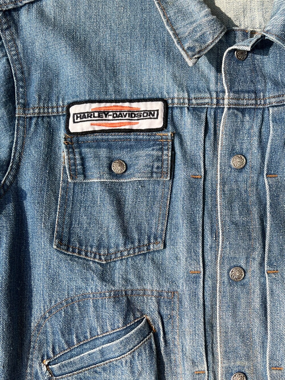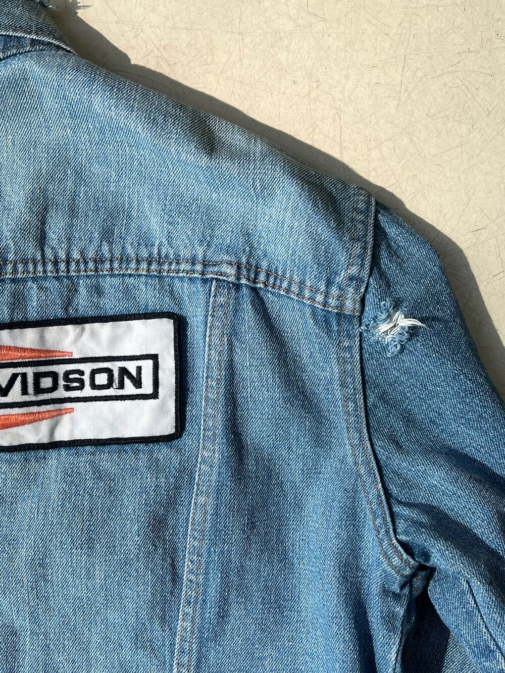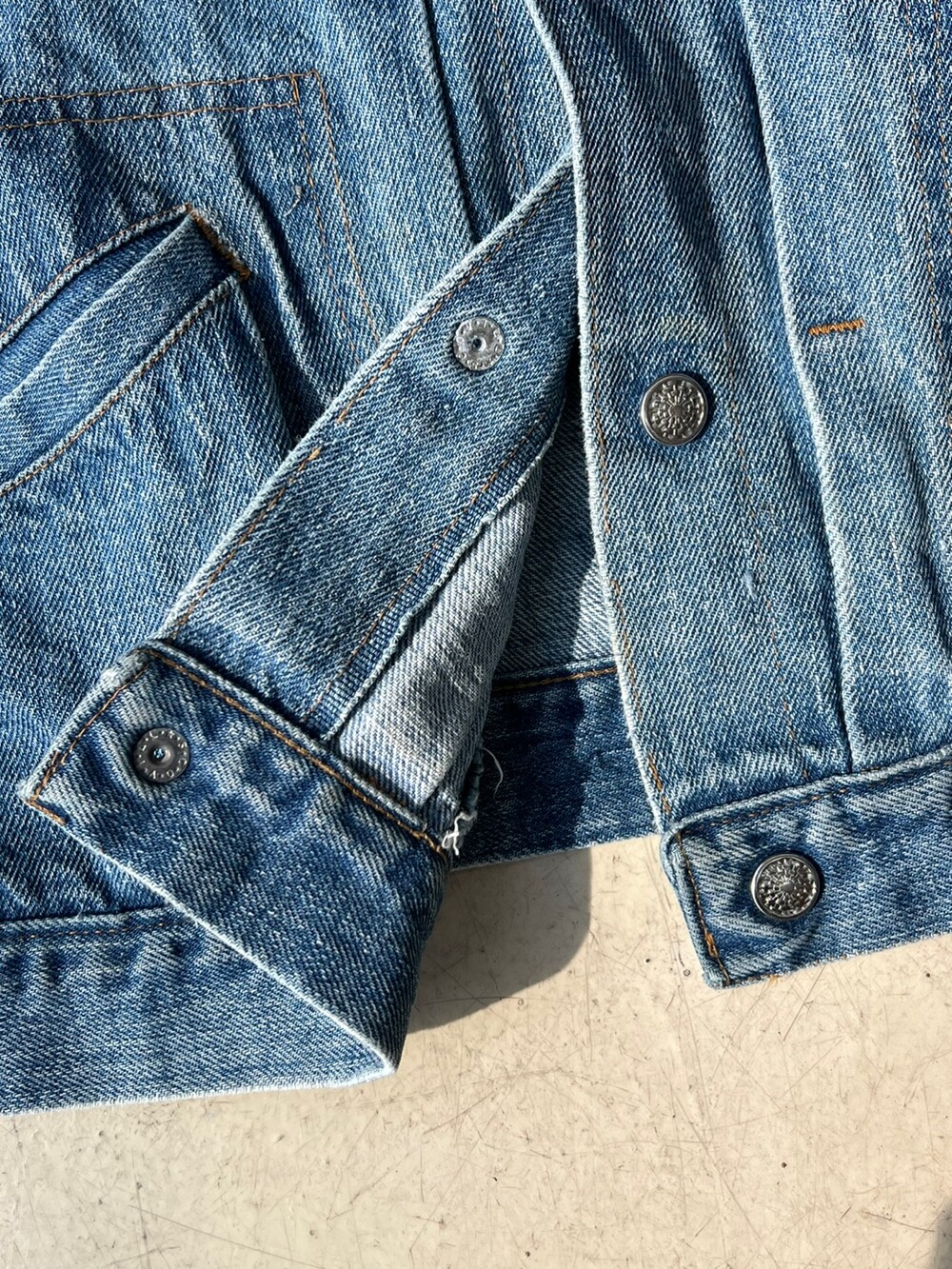 할리 데이비슨의 트러커라기보다는 스토어계열 브랜드의 트러커 자켓에 커스텀 패치가 붙은 제품이라 소개하는 게 맞겠다 싶어 바디에 대해 중점적으로 소개해봅니다. JCPenney Foremost 라인의 데님 트러커와 형태적으는 유사하나 보다 이후 연식인 RANCHCRAFT 라인의 데님 트러커입니다. 렌치크래프트 라인의 데님트러커는 코튼/폴리 혼방 원단을 쓰기도 하고 코튼100%의 일반적인 데님 원단을 사용하기도 하는데, 일반적으로 생각하는 트러커에 비해 원단이 살짝 얇긴해도 페이딩 양상을 보아하니 코튼 100% 혼용률의 제품인 것으로 추정됩니다.