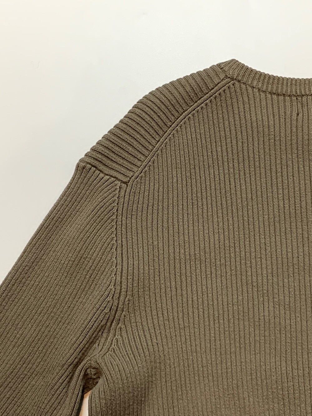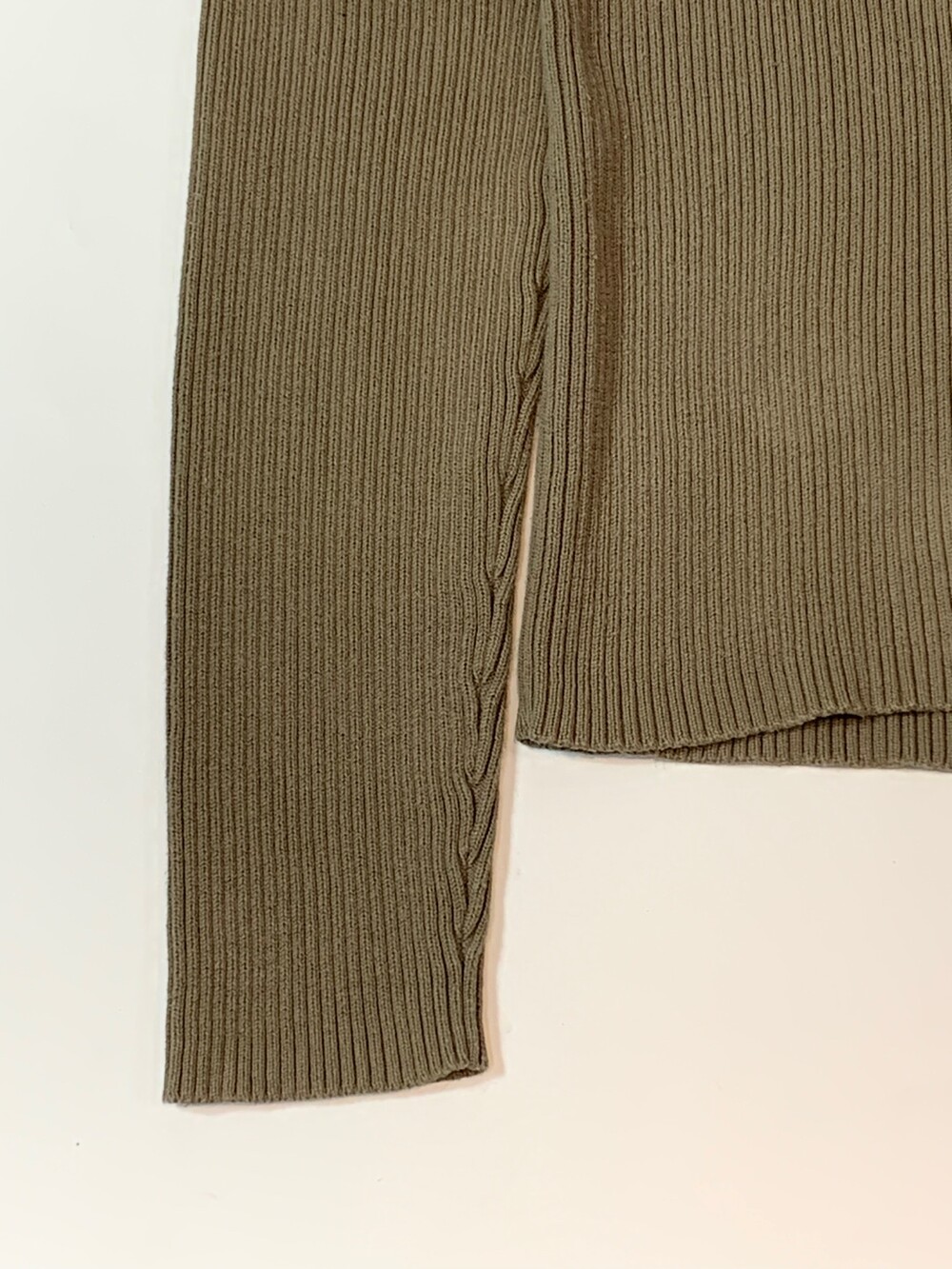사파리웨어를 집중적으로 전개하던 시기에 비하면 다소 모던한 미감을 선보이는 90년대 바나나 리퍼블릭 코튼 니트 풀오버입니다. 원단에 걸맞는 슬림한 느낌의 피팅감이나 밑단과 소매에 립이 따로 붙지 않는 형태 등이 미국보다는 유럽제 미감을 보이는 제품입니다.