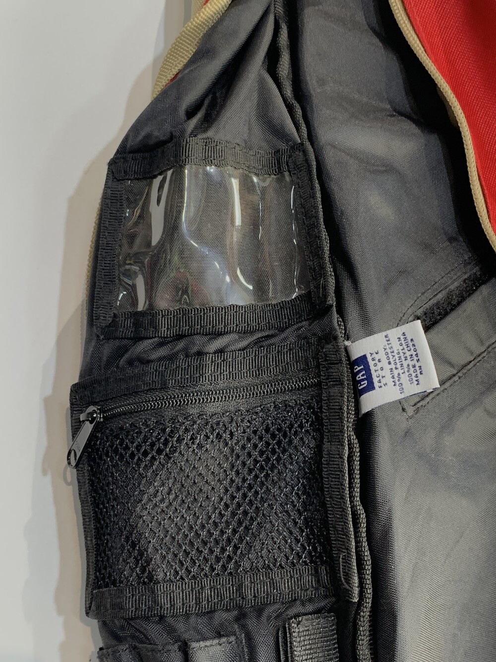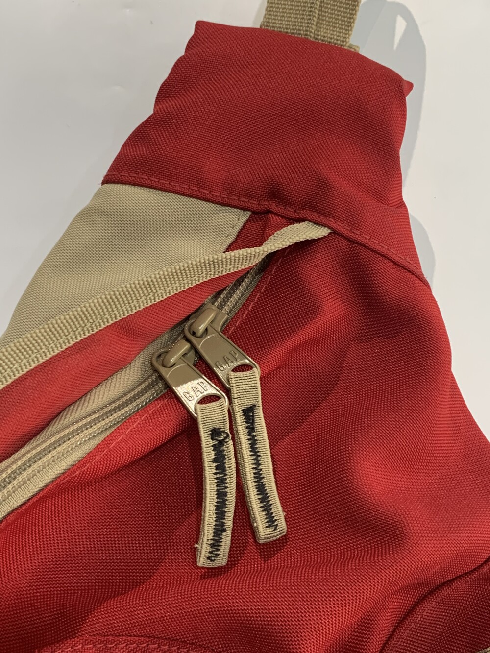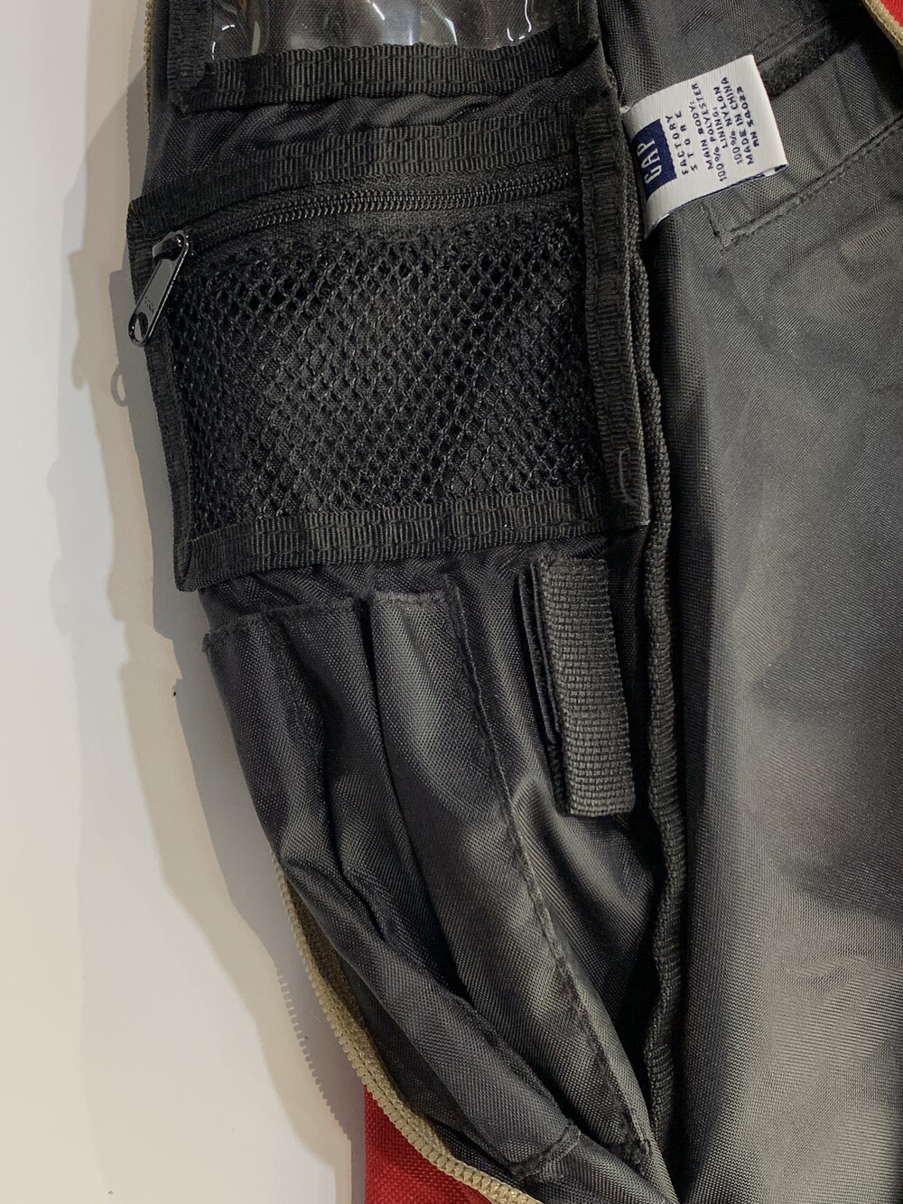 1990년도 후반에서 2000년도 초반 사이에 생산된, 굳이 택을 보지 않더라도 외관상 스마트폰이 본격적으로 보급되기 이전 시기에 생산된 것으로 추정할만한 올드 갭의 크로스 백. 가벼운 무게, 군데군데 배치된 수납공간, 지퍼에 붙은 그립 등으로 현 시점에서도 큰 지장없이 사용할 수 있을만한 제품입니다.