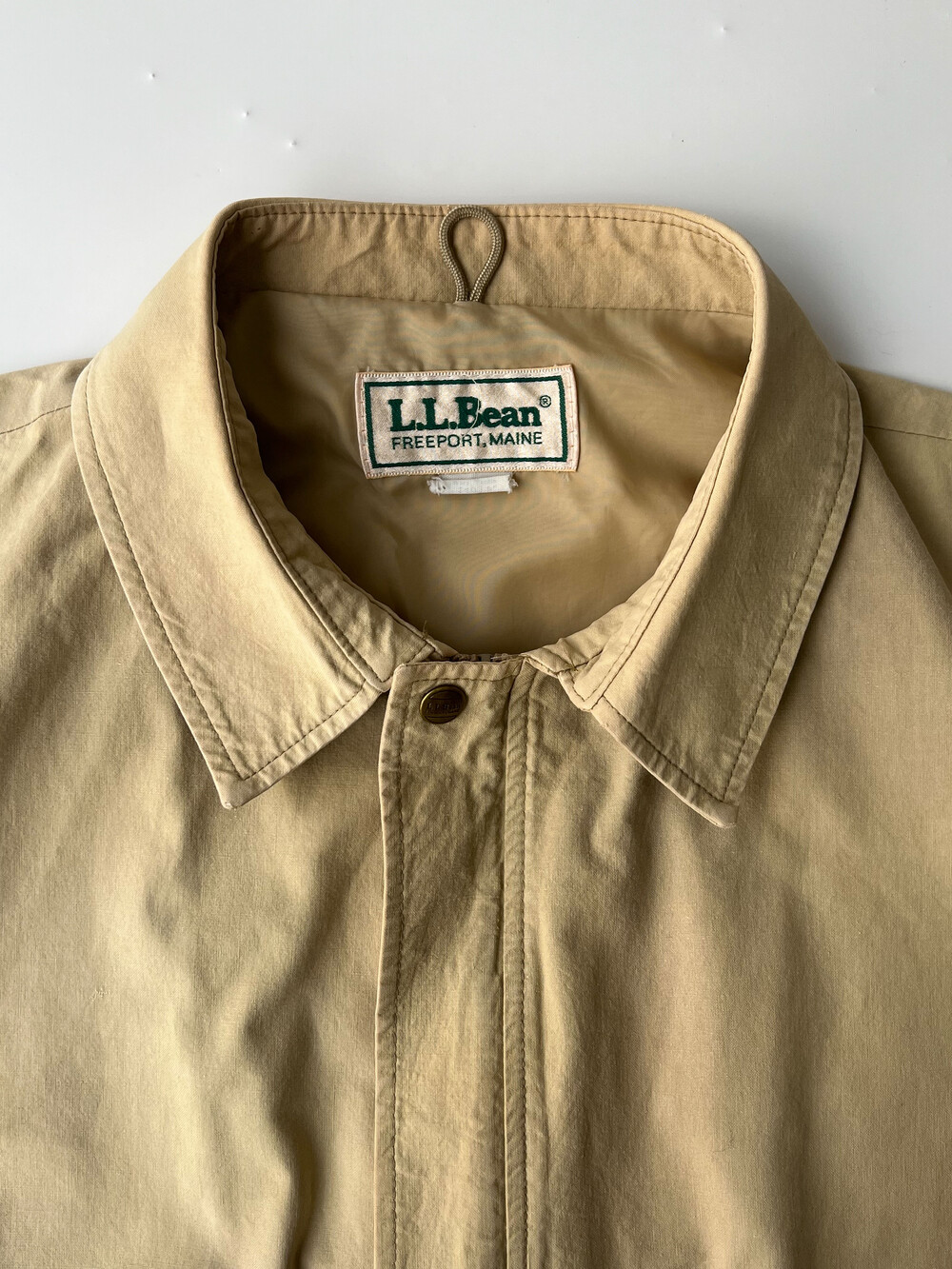 오리지널 A-2 플라이트 자켓의 디테일을 거의 그대로 옮겨놓았지만 전면 플랩에 스냅버튼을 추가하거나 전면 아웃포켓 잠금을 벨크로로 변경하거나 뒷면 액션플리츠를 생략하는 등, 한결 가벼워진 소재감에 걸맞게 디테일을 바꾼 엘엘빈의 코튼 플라이트 자켓.