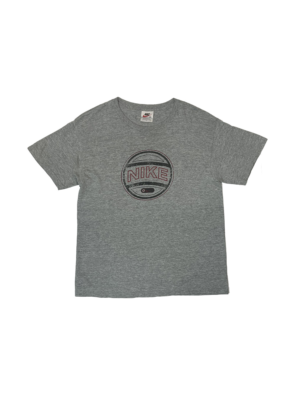 1990년대 중후반에 생산된 것으로 추정되는 나이키의 티셔츠. 멜란지 그레이 컬러의 바디 위에 크랙이 일어난 프린팅 조합에서 빈티지한 매력이 돋보이는 제품입니다.