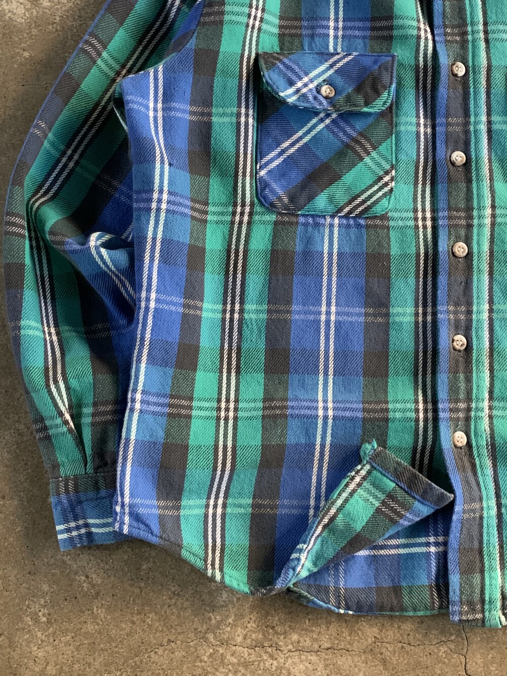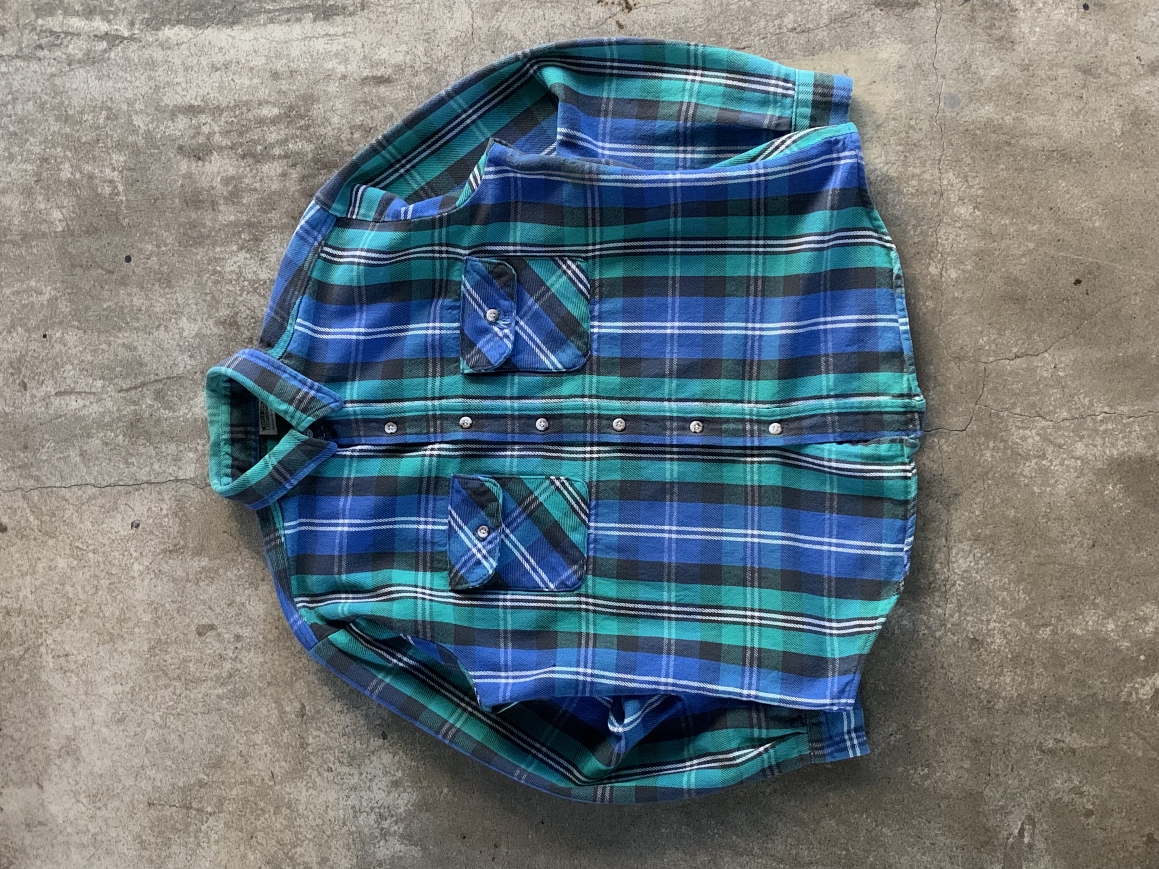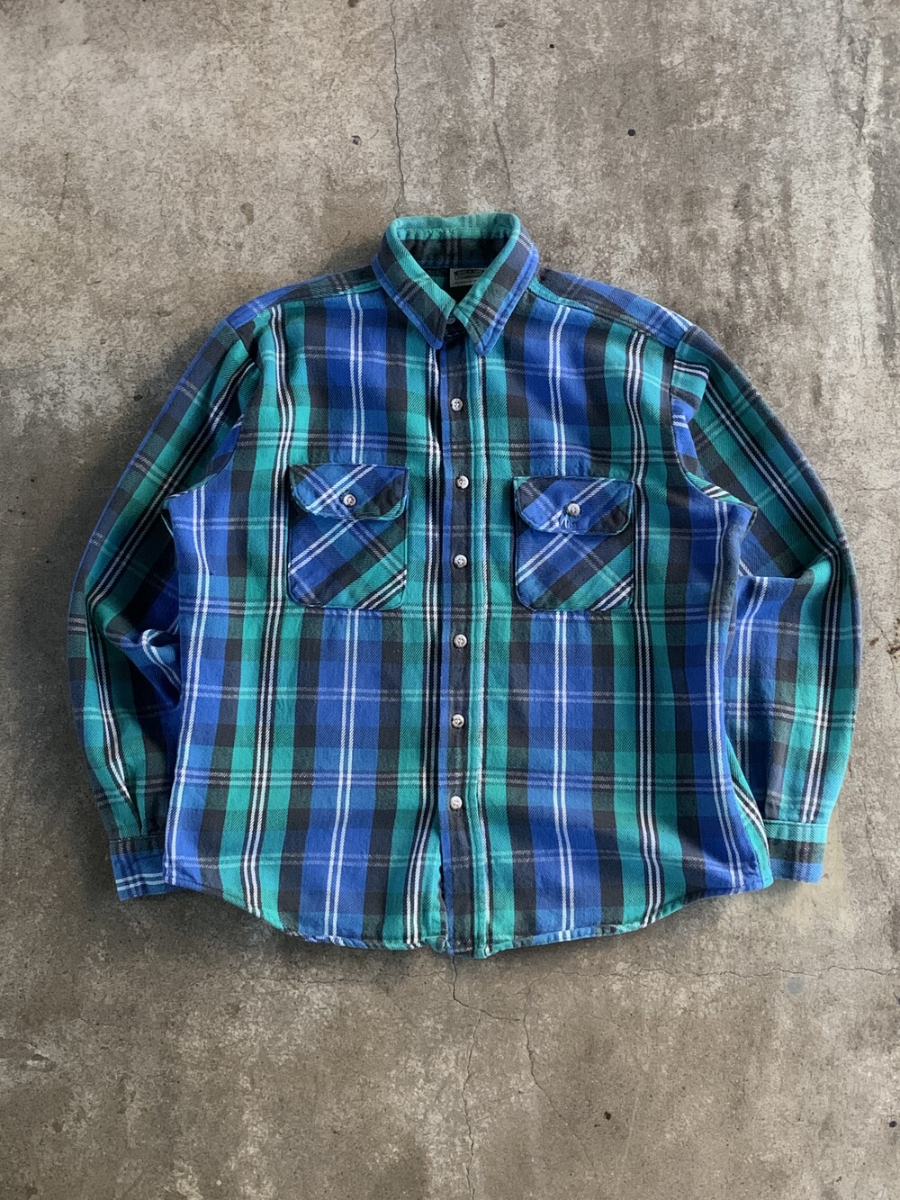 클래식 워크웨어 브랜드 파이브 브라더(FIVE BROTHER)를 상징하는 품목 중 하나인 플란넬 셔츠입니다. 두께감있는 코튼 트윌 원단에 블루&그린 배색의 캐주얼한 체크 패턴이 올려진 제품으로, 푸퍼 베스트나 마운틴 파카 등 워크웨어 아우터와도 곧잘 어울릴만한 제품입니다.