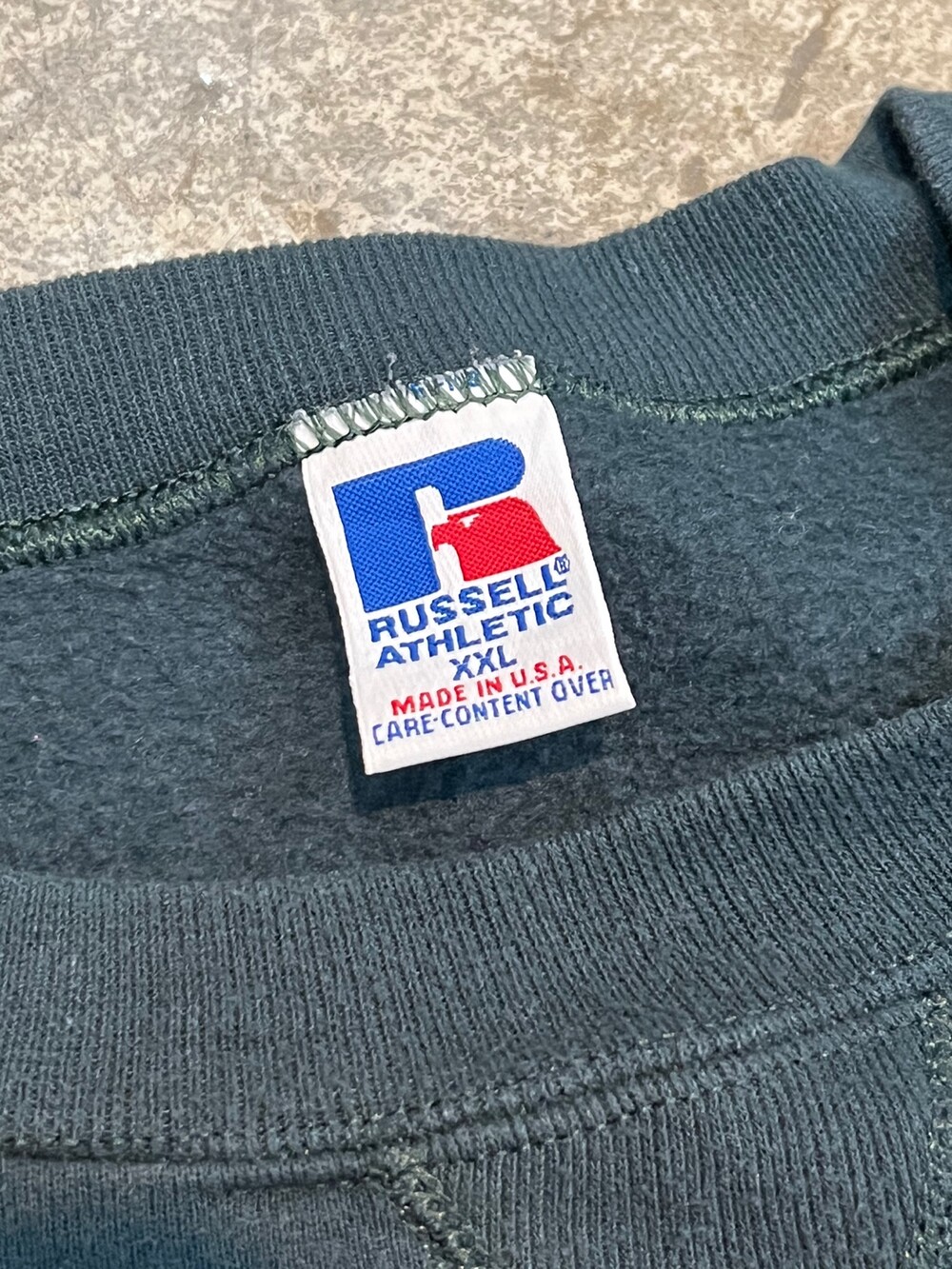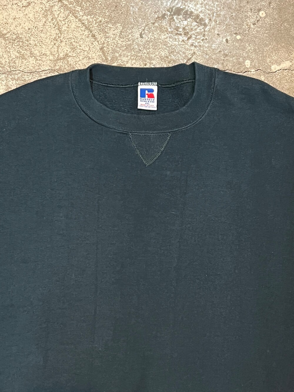 🚩Detail 몸판 옆 부분, 밑단 립(Rib) 부분에 봉제선이 없는 형태를 원통형 관 모양이라는 의미의 튜블러(Tubular) 라고 합니다. 튜블러 타입 스웻셔츠 중에서도 수요가 많은 90년대 러셀 애슬레틱의 스웻셔츠입니다. 별도의 프린팅이 없는 플레인 모델로, 짙은 청록색 바디 컬러와 여유로운 사이즈가 매력적인 제품입니다.
