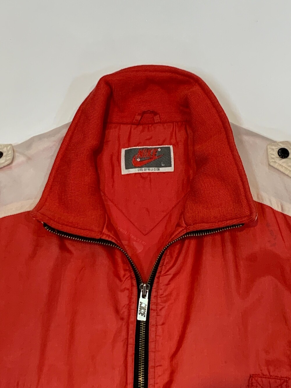 화승과 나이키의 라이센스 계약이 만료되고 삼양통상과 함께 계약을 체결해 소개하던 시기의 한국 나이키 나일론 소재의 베스트입니다. 스냅으로 열고 닫을 수 있는 견장, 포켓, 밑단 스트랩 등의 택티컬한 디자인이 돋보이는 제품으로, 패션 뿐만아니라 러닝이나 아웃도어 활동 간 기어로써 활용해도 좋을만한 제품입니다.