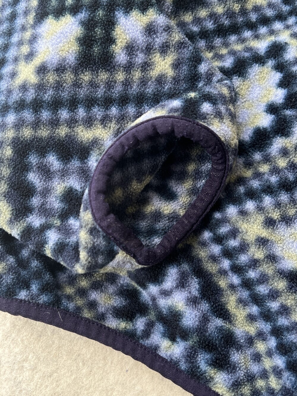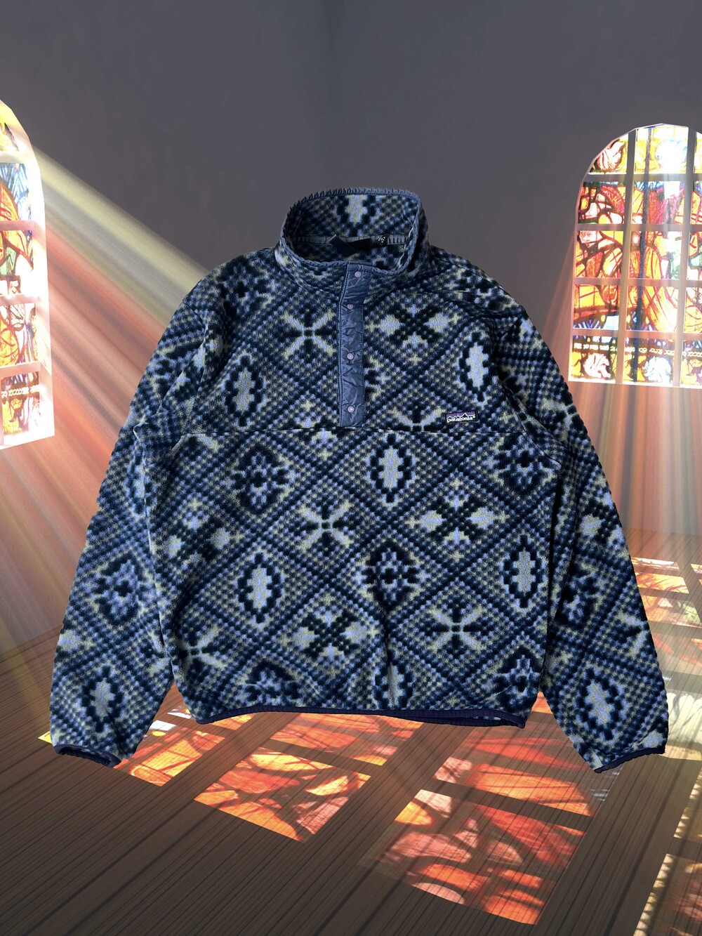 페트병을 분해하여 얻어낸 100% 리사이클드 폴리에스테르 소재로 제작되었을 뿐더러, 세계 각지의 문화권에서 실제로 사용하던 전통 문양을 어레인지한 패턴이 적용된 프린티드 신칠라(Printed Synchilla) 원단이 사용된 제품입니다.