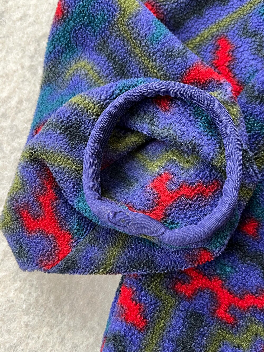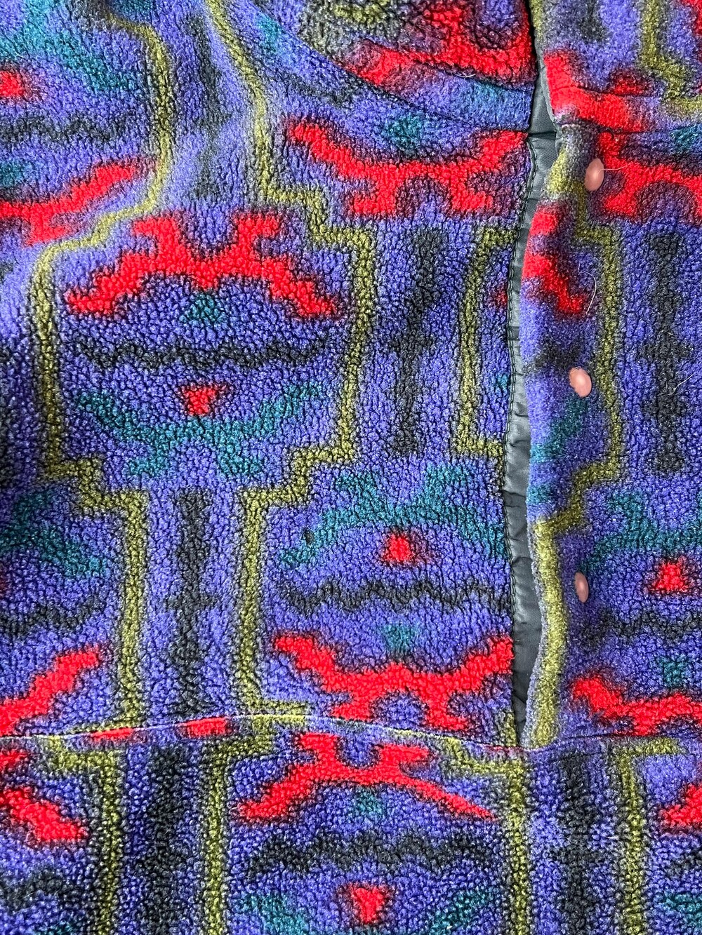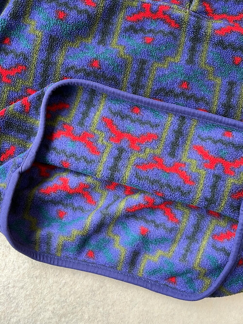🚩Detail 세계 각지의 문화권에서 사용하던 전통 문양을 어레인지한 패턴이 적용된 프린티드 신칠라 스냅 티셔츠입니다. 칠레와 아르헨티나 남부에 위치한 파타고니아 및 팜파 지역 토착민을 지칭하는 테우엘체(Tehuelche)부족의 직물 패턴과 동일한 프린팅이 적용된 제품입니다. 그 중에서도 파타고니아 라벨에 흰 외곽선이 없는, 이른바 '눈 없는 산'으로 불리는 라벨이 적용된 보기드문 개체입니다.